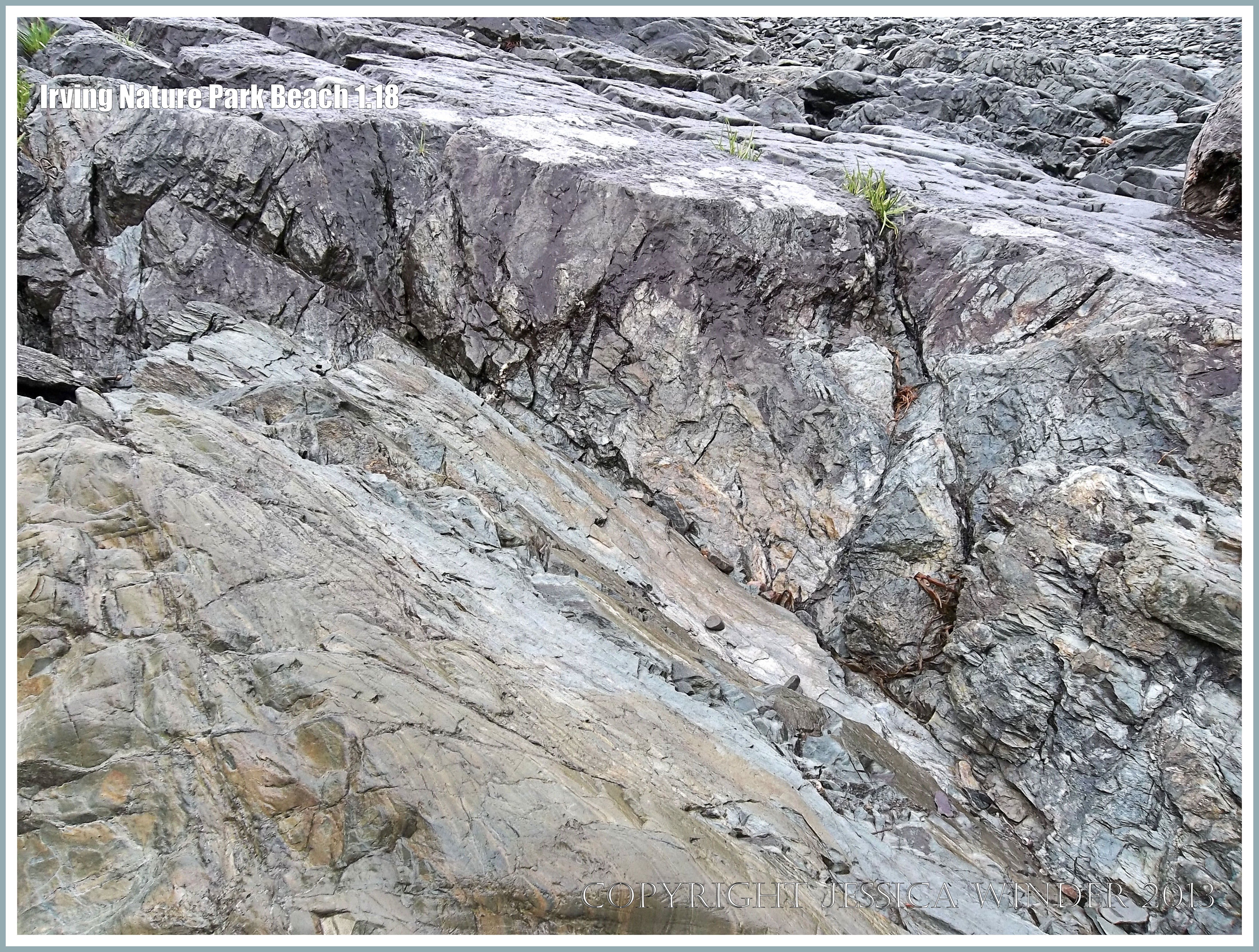 Irving Nature Park Beach 1.18 – Close-up of rock pattern and texture in PreCambrian volcanic rock of the Taylor Island Formation (ZCTIvs) on the beach at Irving Nature Park, New Brunswick, Canada.