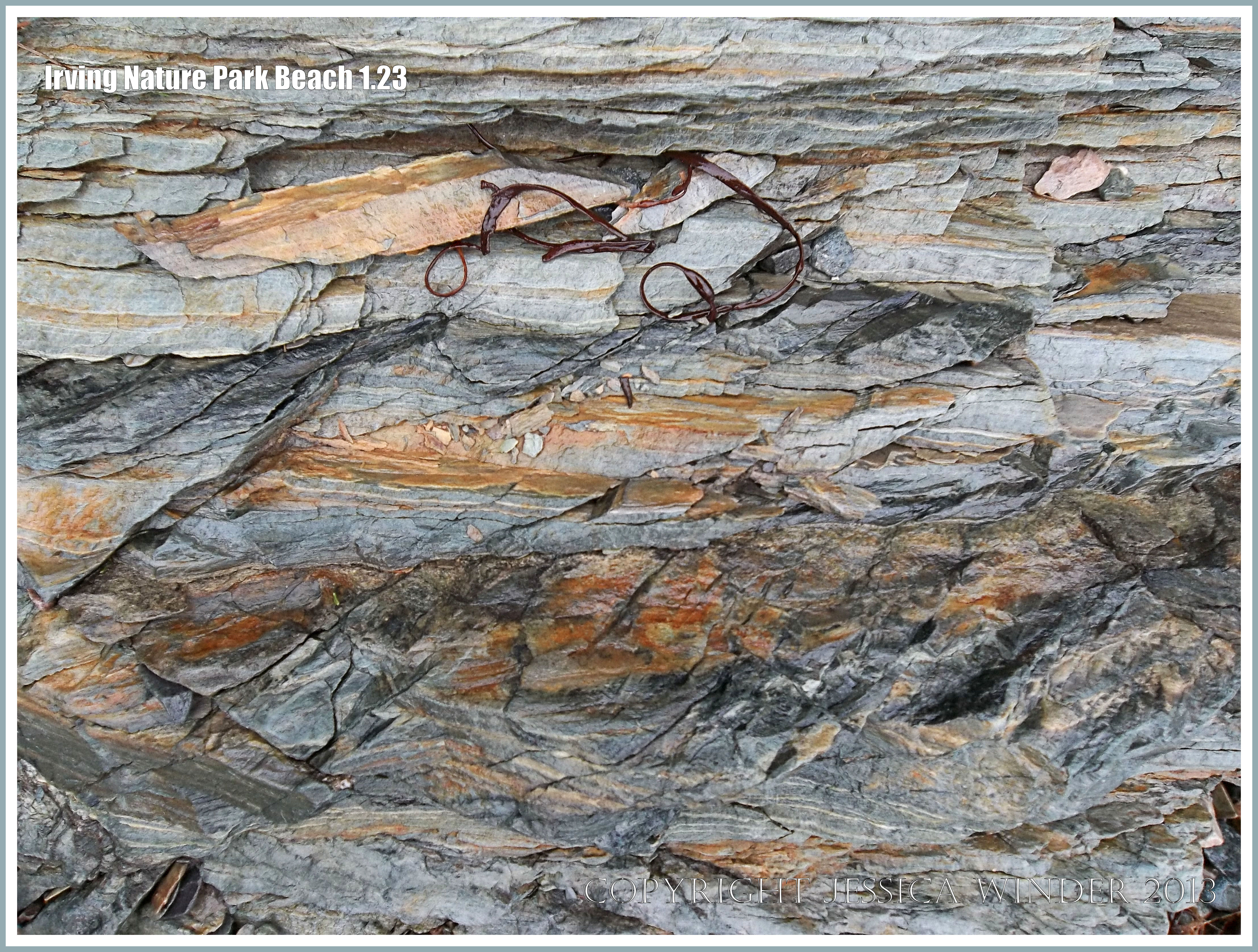 Irving Nature Park Beach 1.23 – Close-up of rock pattern and texture in PreCambrian volcanic rock of the Taylor Island Formation (ZCTIvs) on the beach at Irving Nature Park, New Brunswick, Canada.