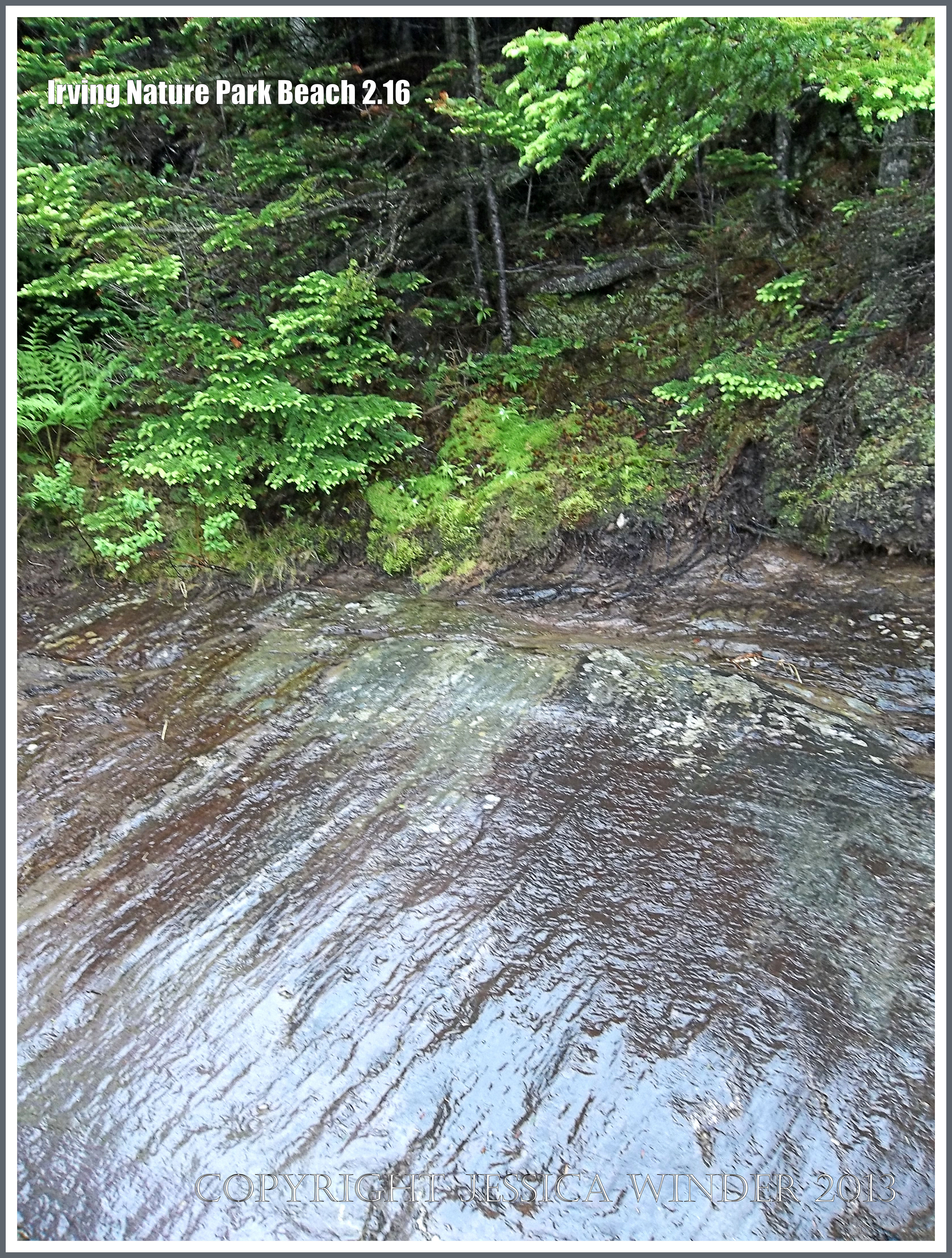 Irving Nature Park Beach 2.16 – Precambrian volcanic bedrock from the Taylor Island Formation with surface polished by a glacier on a beach at Irving Nature Park, New Brunswick, Canada.
