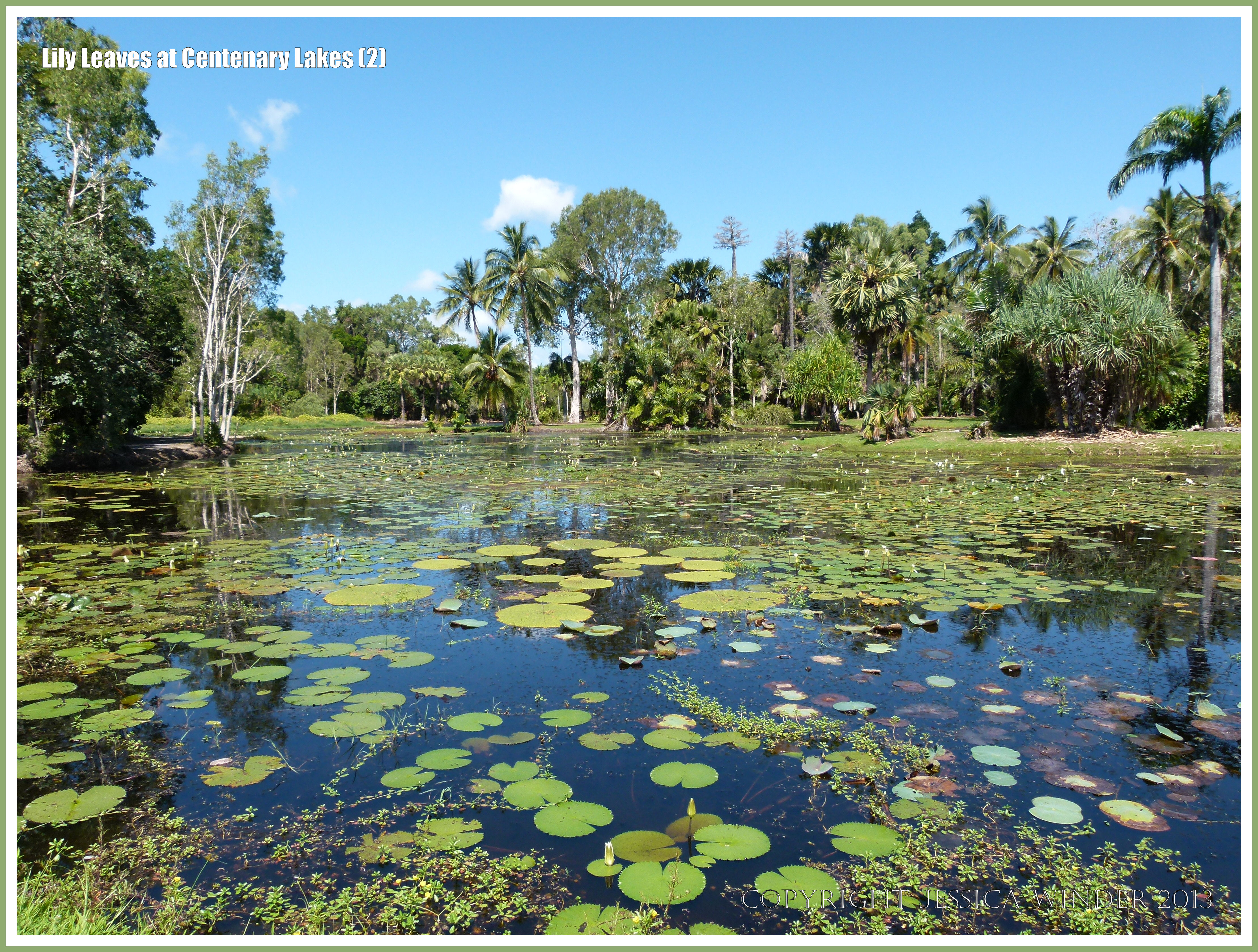 Lily Leaves at Centenary Lakes 2 – View across the freshwater Centenary Lake with water lily leaves at Cairns Botanic Gardens, Queensland, Australia.