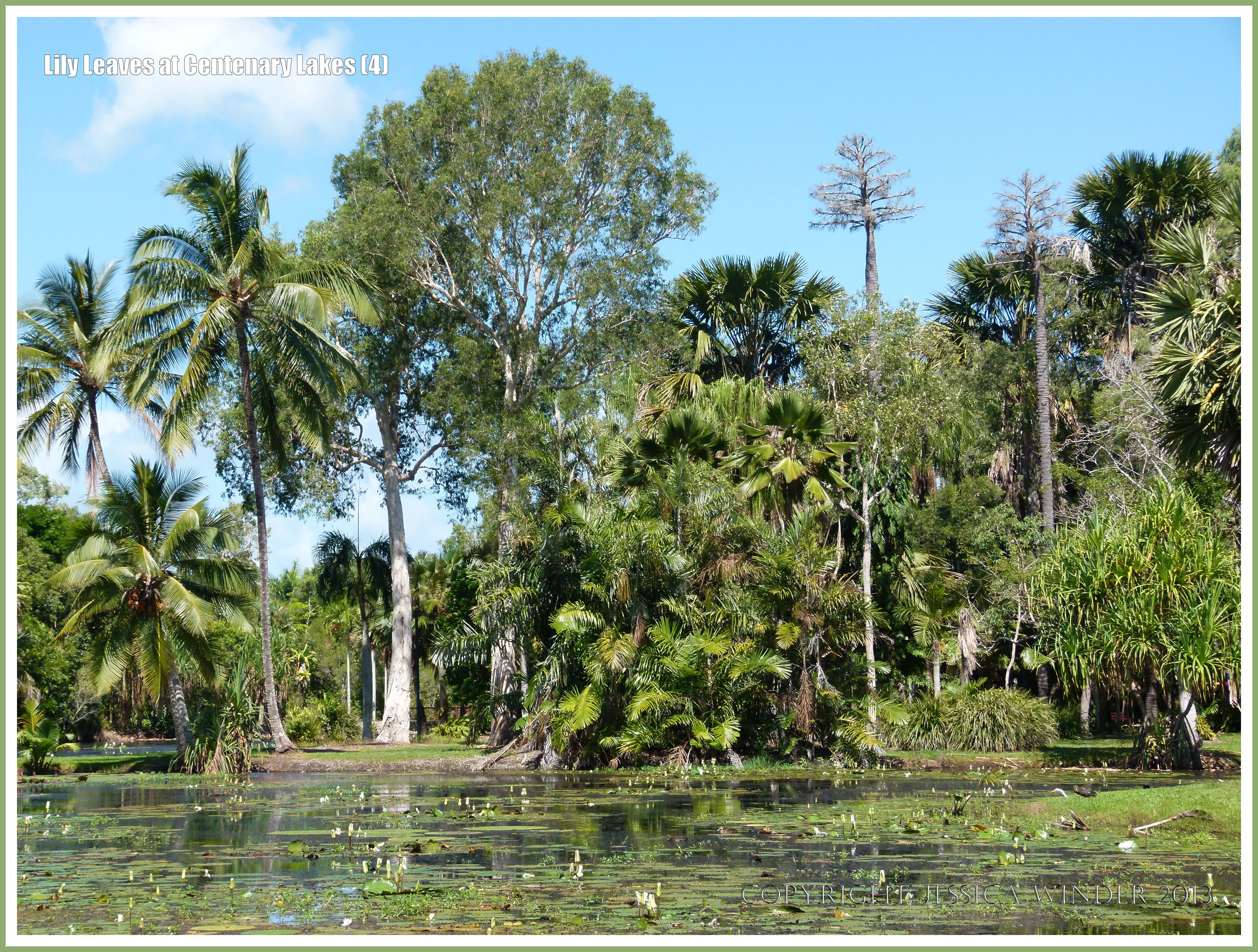 Lily Leaves at Centenary Lakes 4 – View across the freshwater Centenary Lake with water lily leaves at Cairns Botanic Gardens, Queensland, Australia.