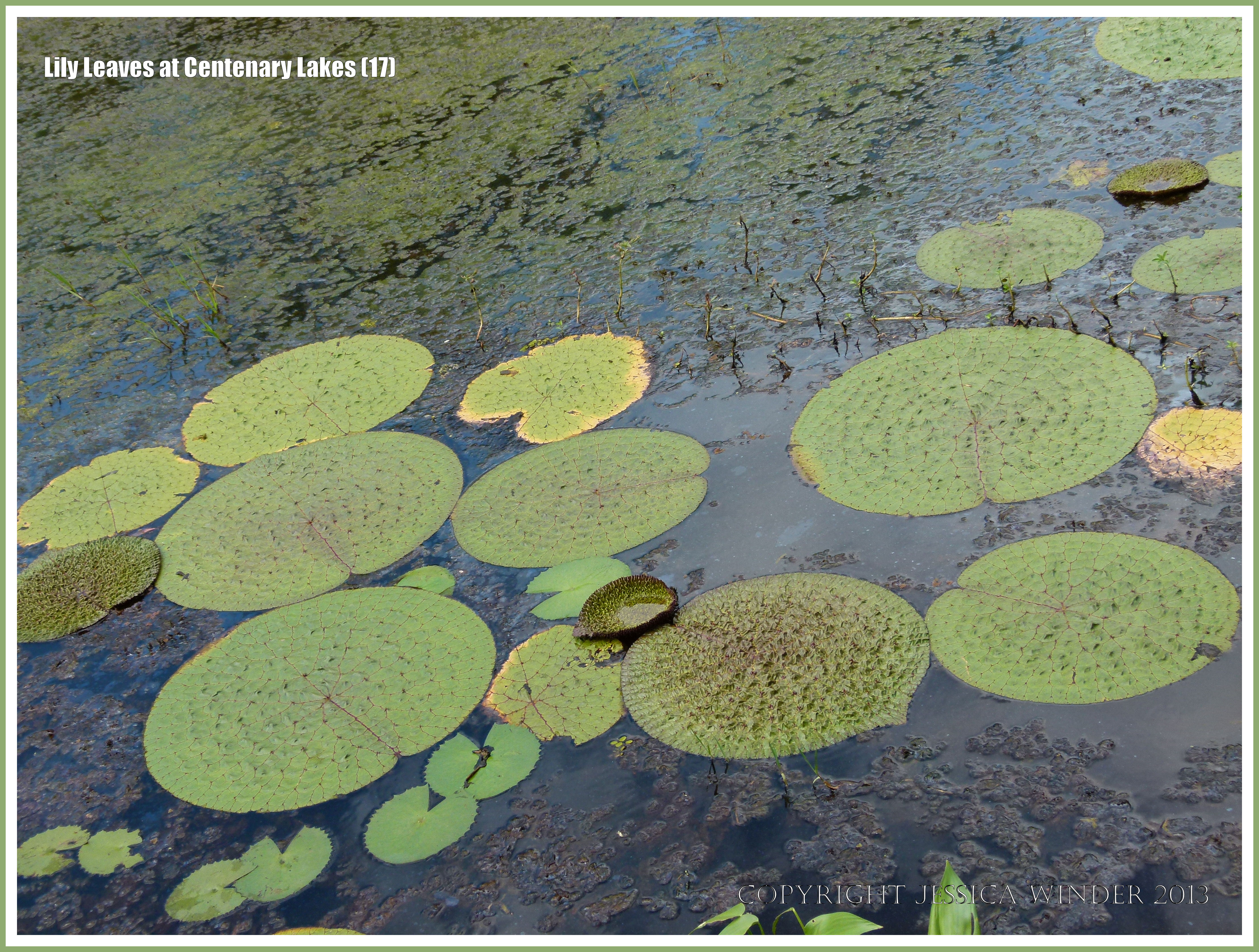 Lily Leaves at Centenary Lakes 17 – Various types of water lily leaves floating on the surface at Centenary Lakes