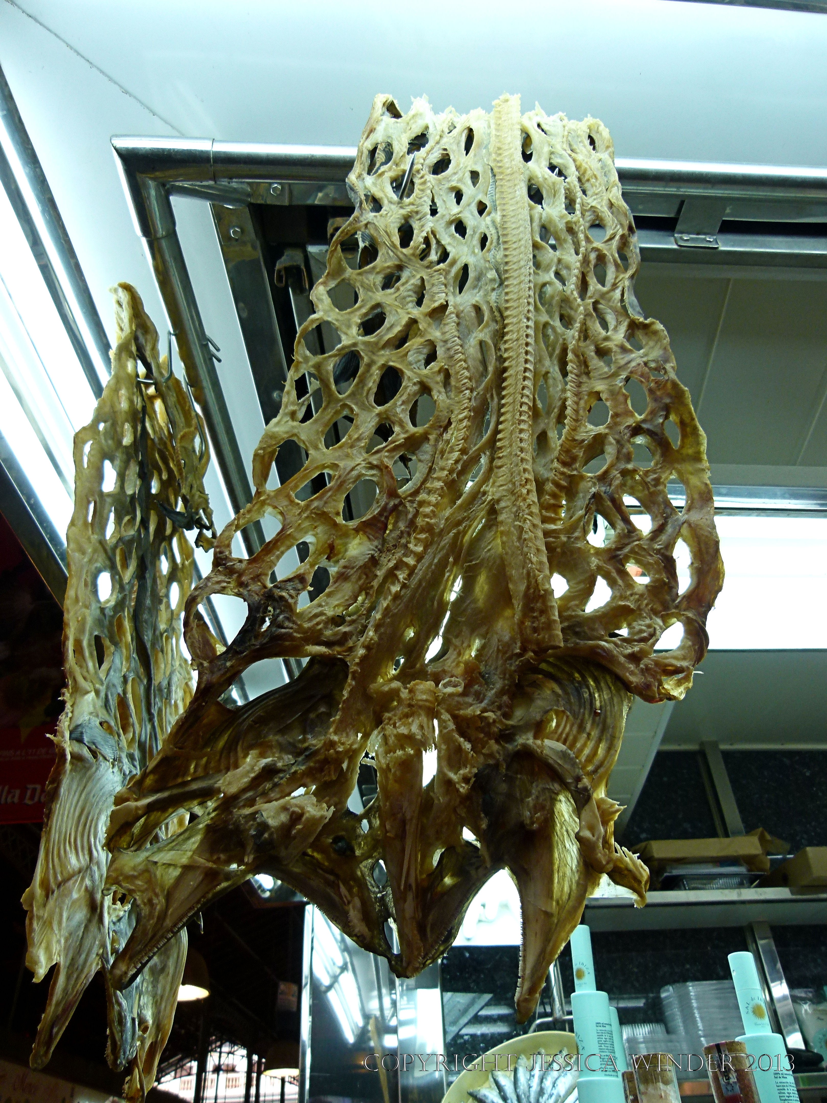 Fruits of the Sea 5 – Seafood (dried fish skins) displayed on a market stall at St Josep La Boqueria, Barcelona, Spain.