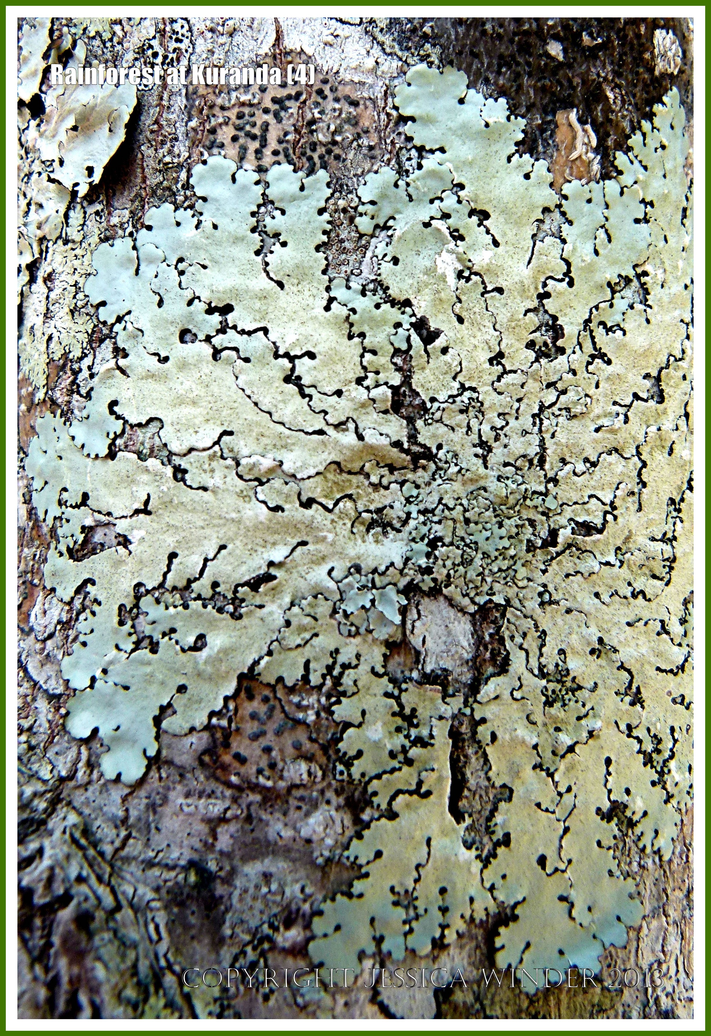 Rainforest at Kuranda 4 – Lichen on a tree trunk in the wet tropical rainforest at Kuranda in Queensland, Australia.