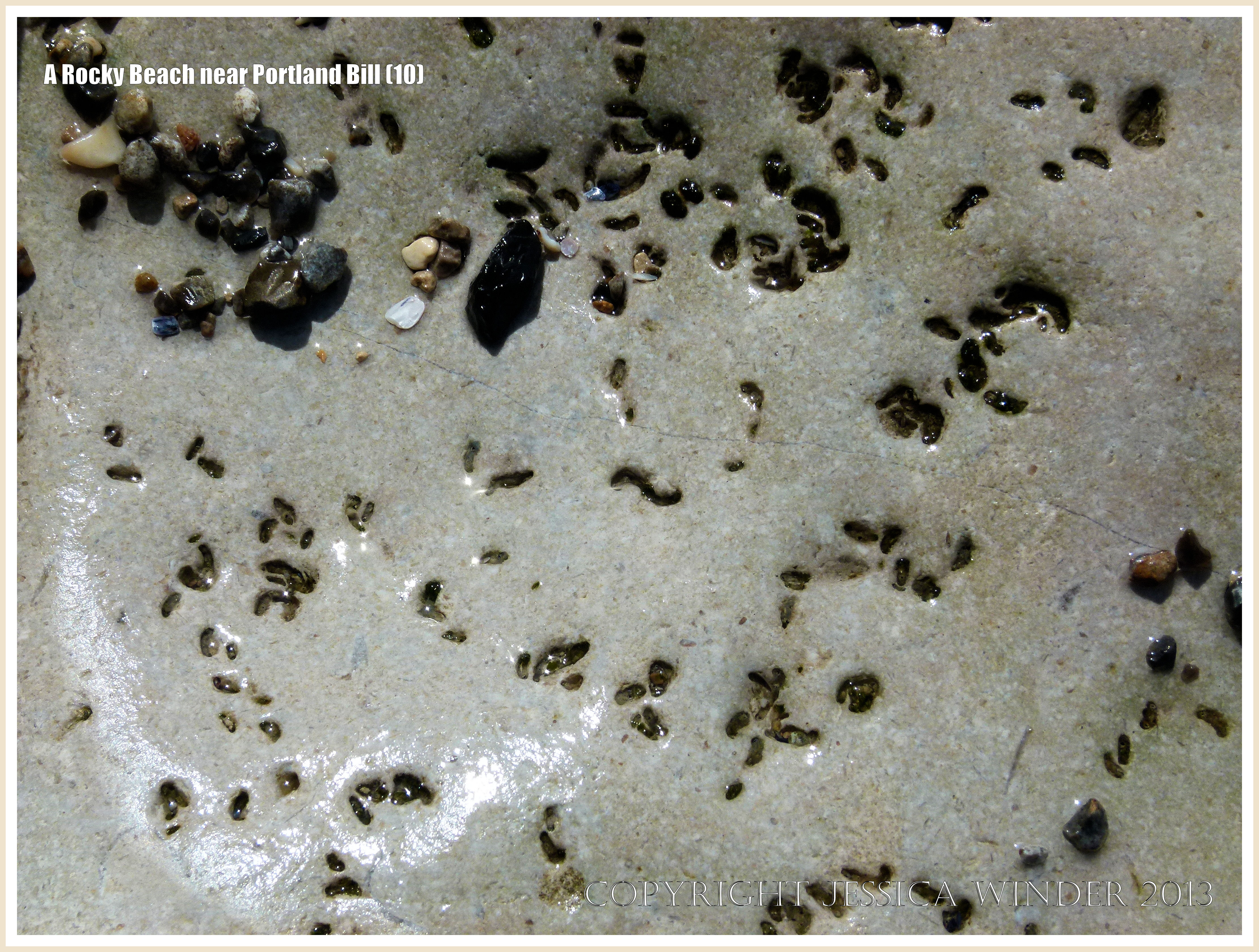 A Rocky Beach near Portland Bill 10 – Close-up of a smooth limestone outcrop on lower shore with small marine worm burrows; seen on the eastern shore of the Isle of Portland, Dorset, U.K.