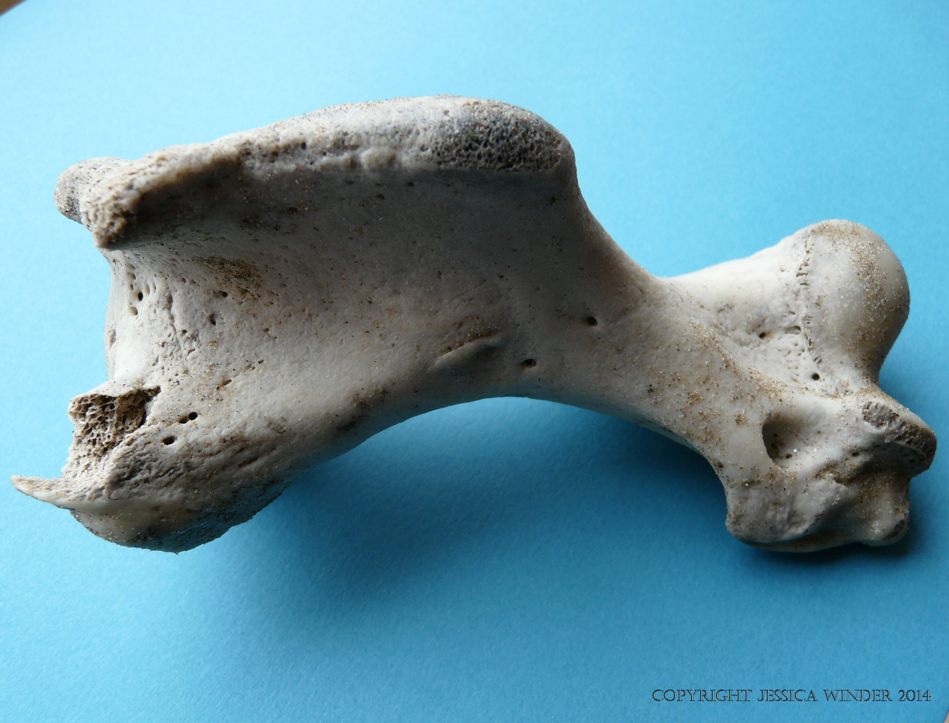 Seal Humerus Bone 1 – One of nine images showing the different appearance of a Grey Seal (Halichoerus grypus) humerus bone when viewed from various angles.