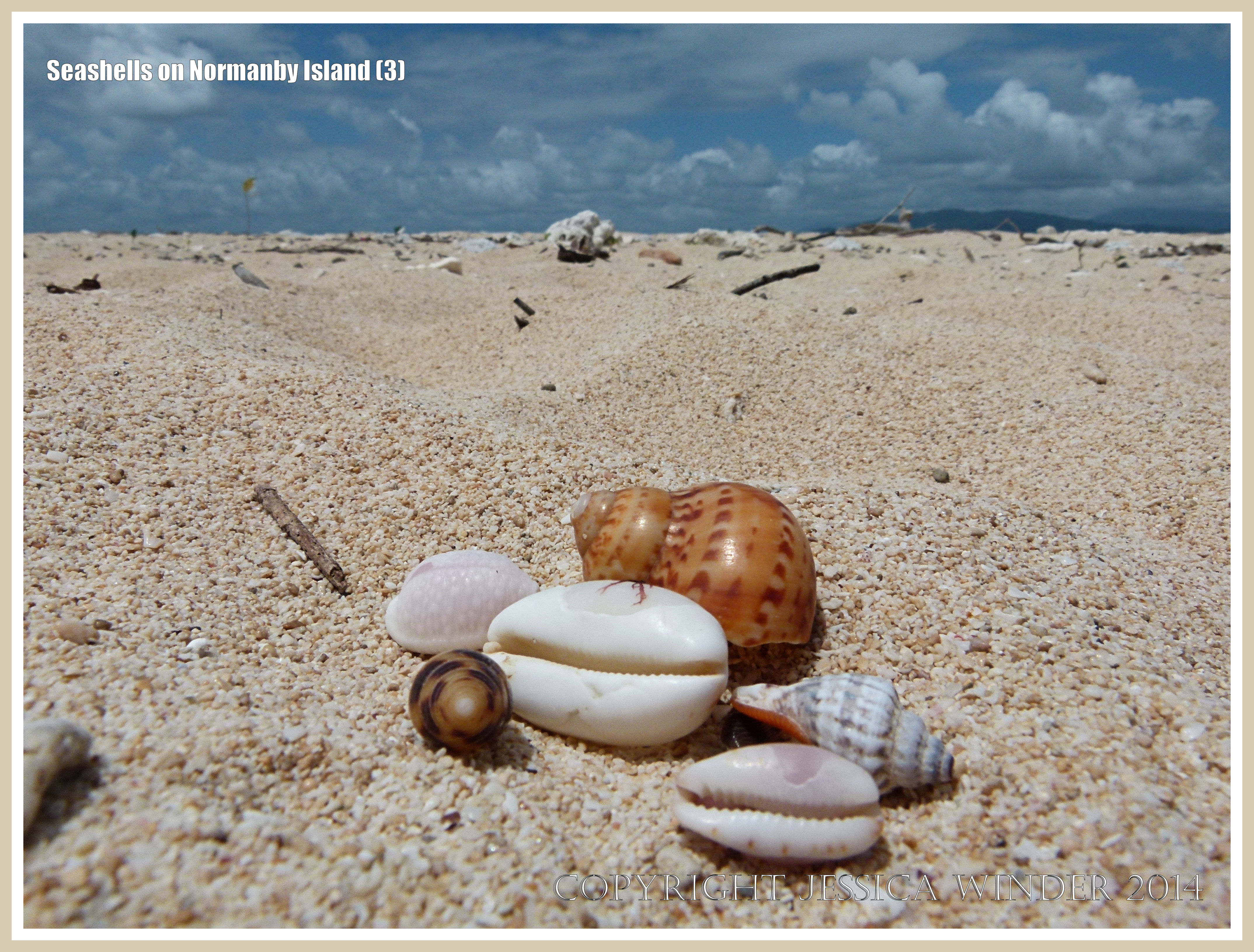 Seashells on Normanby Island 3 – Tropical Australian seashells photographed on the beach at Normanby Island National Park, part of the Frankland Island group, on the Great Barrier Reef off the Queensland Coast.