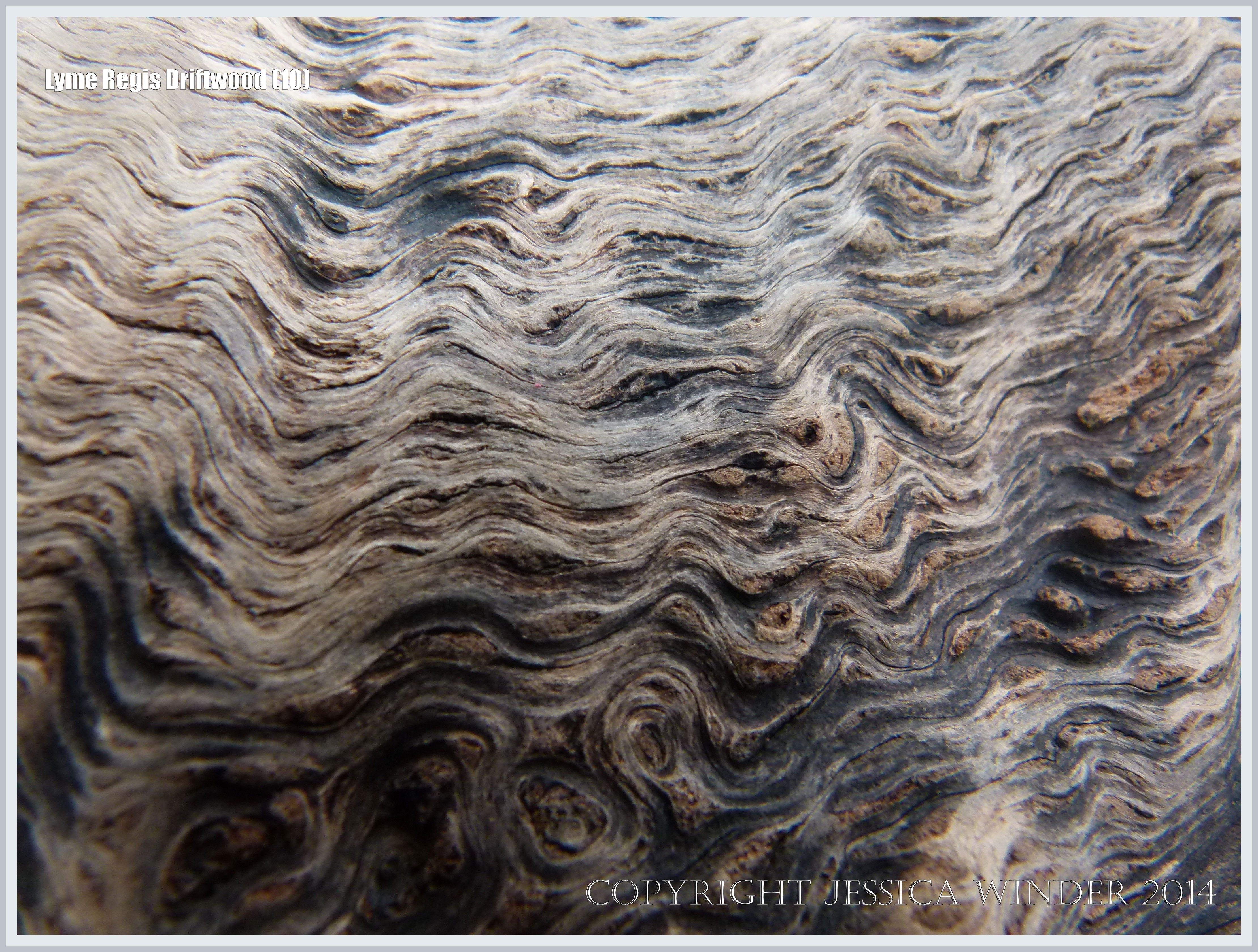 Lyme Regis Driftwood 10 – Macro-photograph of woodgrain pattern and texture on driftwood at the beach in Lyme Regis, Dorset, England.