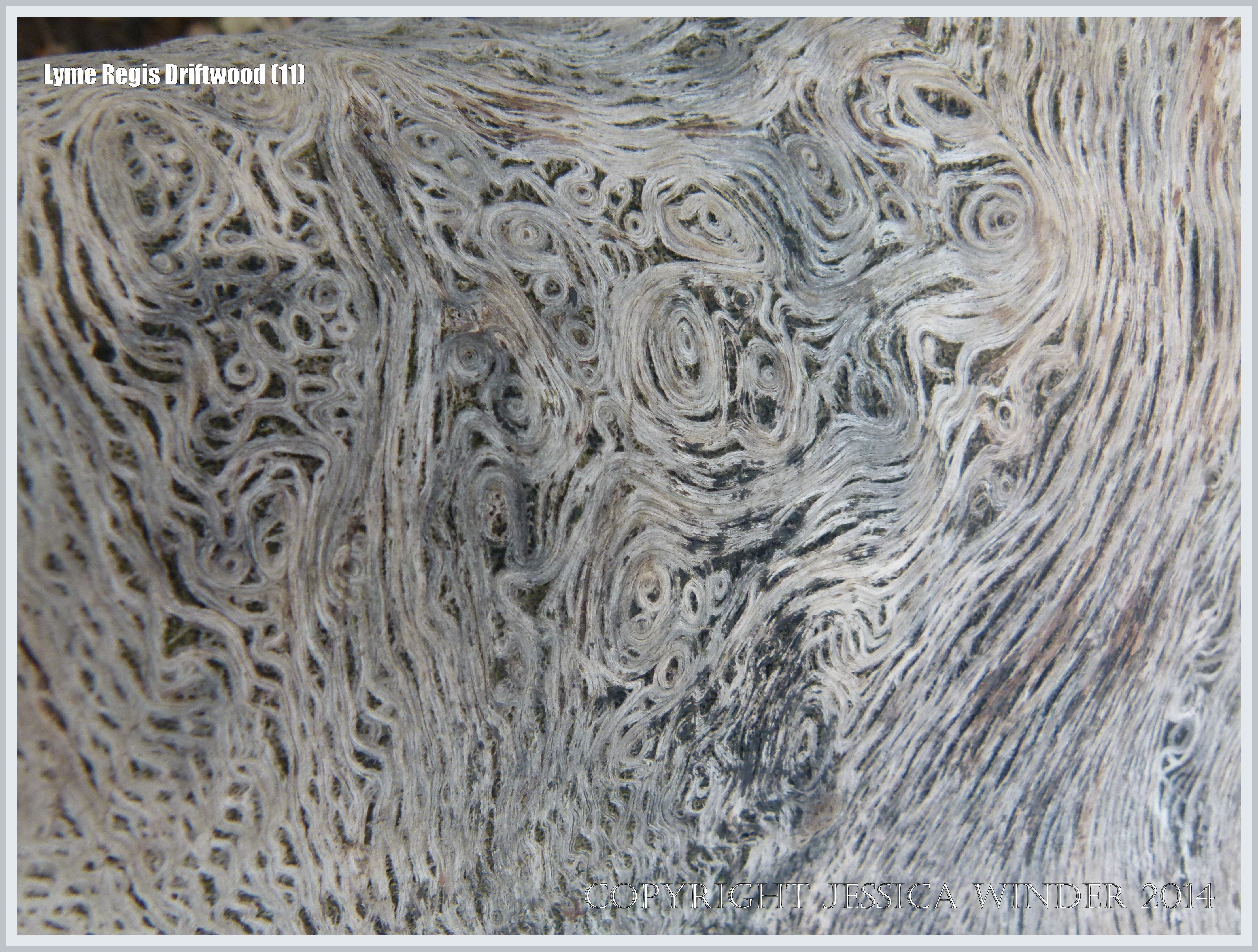 Lyme Regis Driftwood 11 – Macro-photograph of woodgrain pattern and texture on driftwood at the beach in Lyme Regis, Dorset, England.
