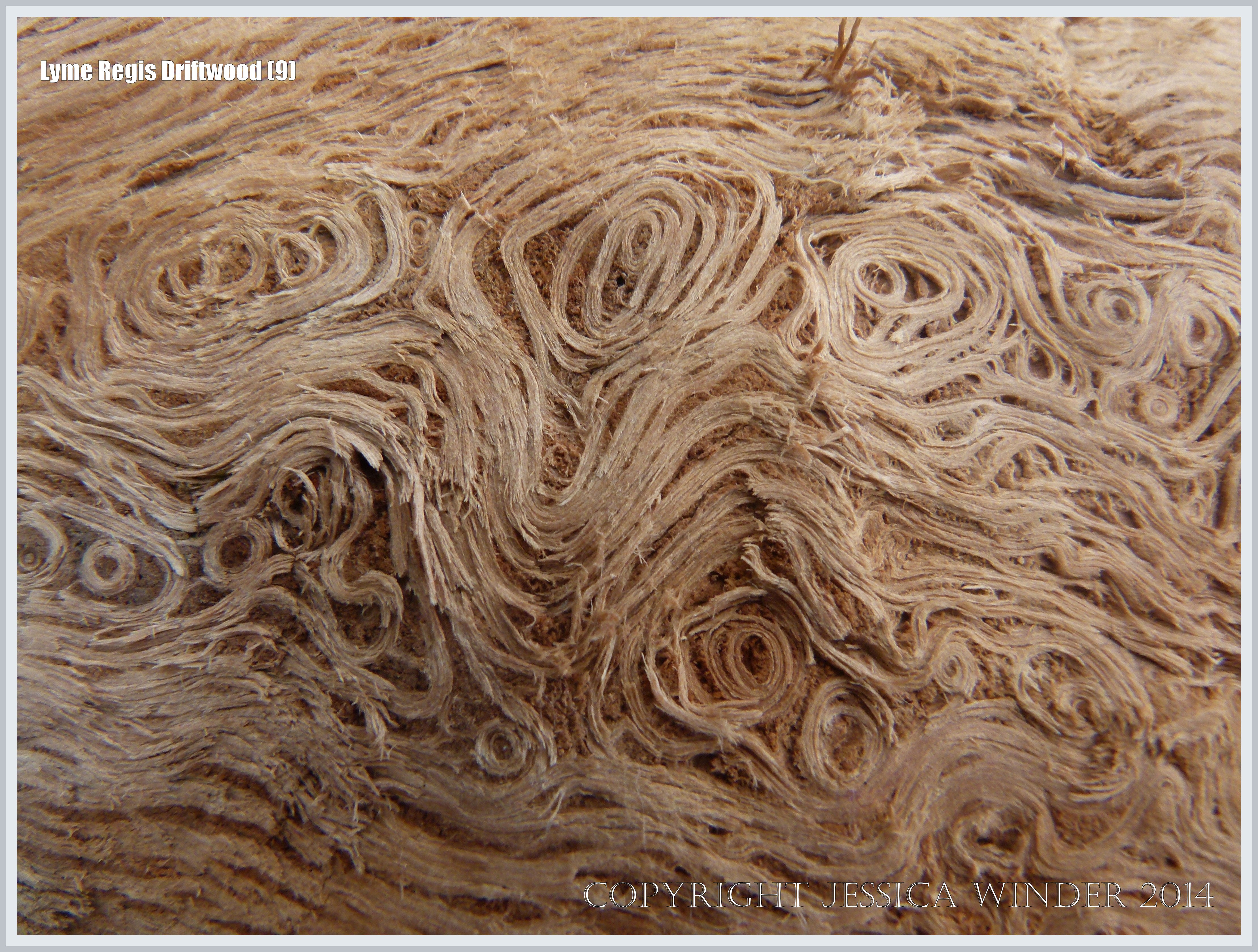 Lyme Regis Driftwood 9 – Macro-photograph of woodgrain pattern and texture on driftwood at the beach in Lyme Regis, Dorset, England.