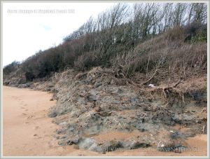 Storm Damage at Ringstead Beach 23 – Clay that has slipped down from the low slumping cliff at the western end of Ringstead Bay towards Bran Point in Dorset, England (1st March 2014).