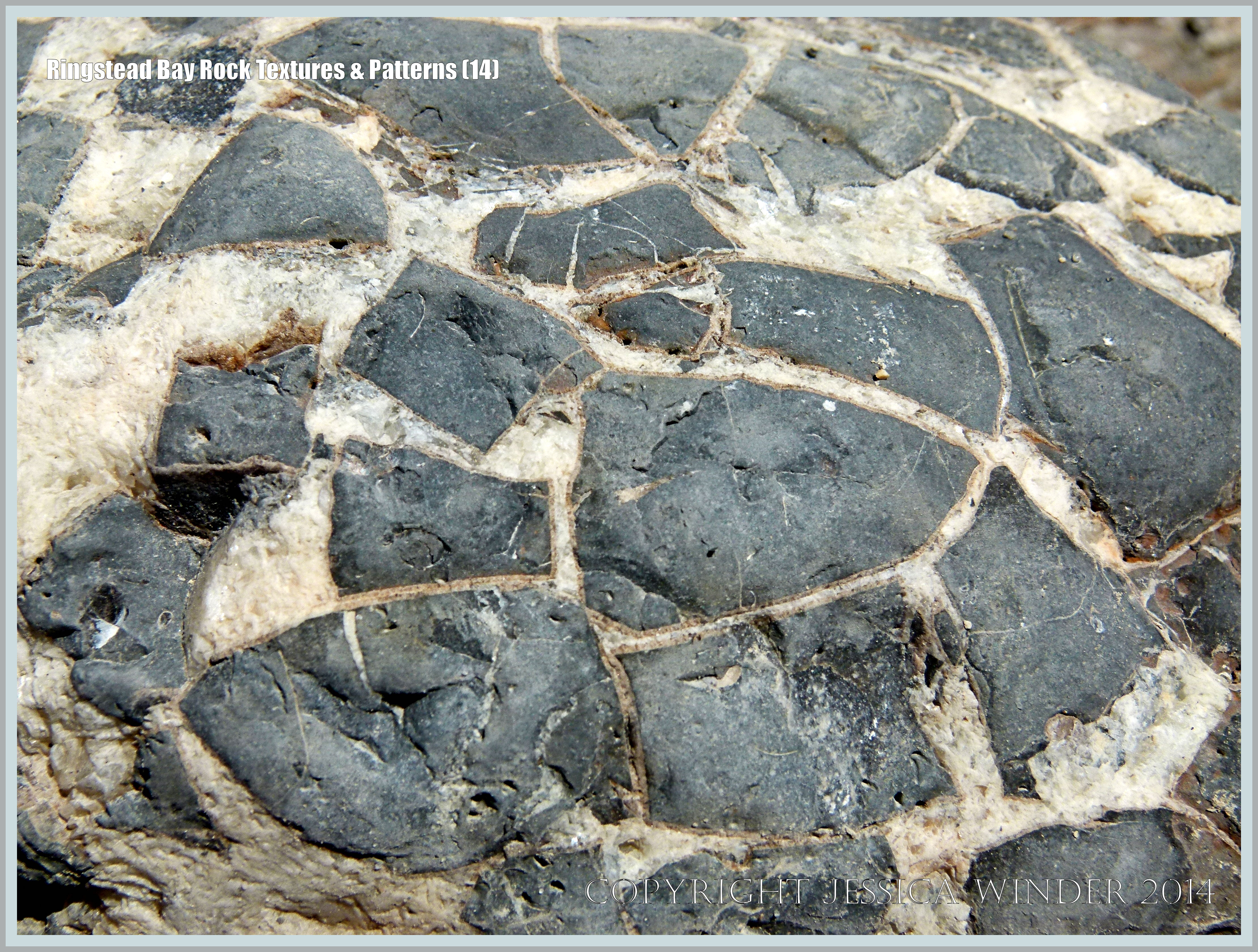 Ringstead Bay Rock Textures & Patterns 14 – Close-up of a septarian nodule on the beach below a land-slip at Ringstead Bay in Dorset, England.