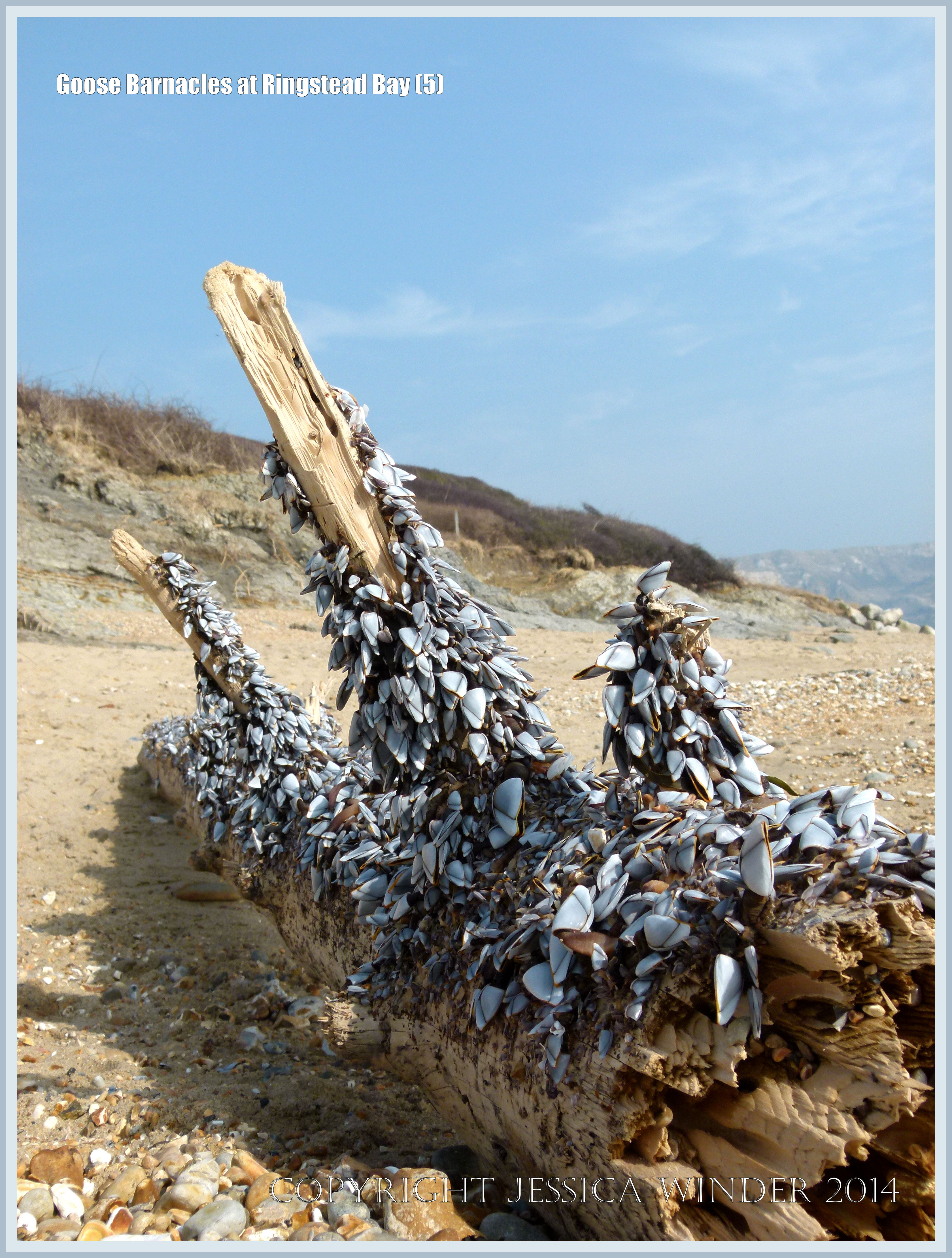 Goose Barnacles at Ringstead Bay 1- Goose or stalked barnacles (Lepas anatifera) on driftwood wshed ashore at Ringstead Bay in Dorset, England.