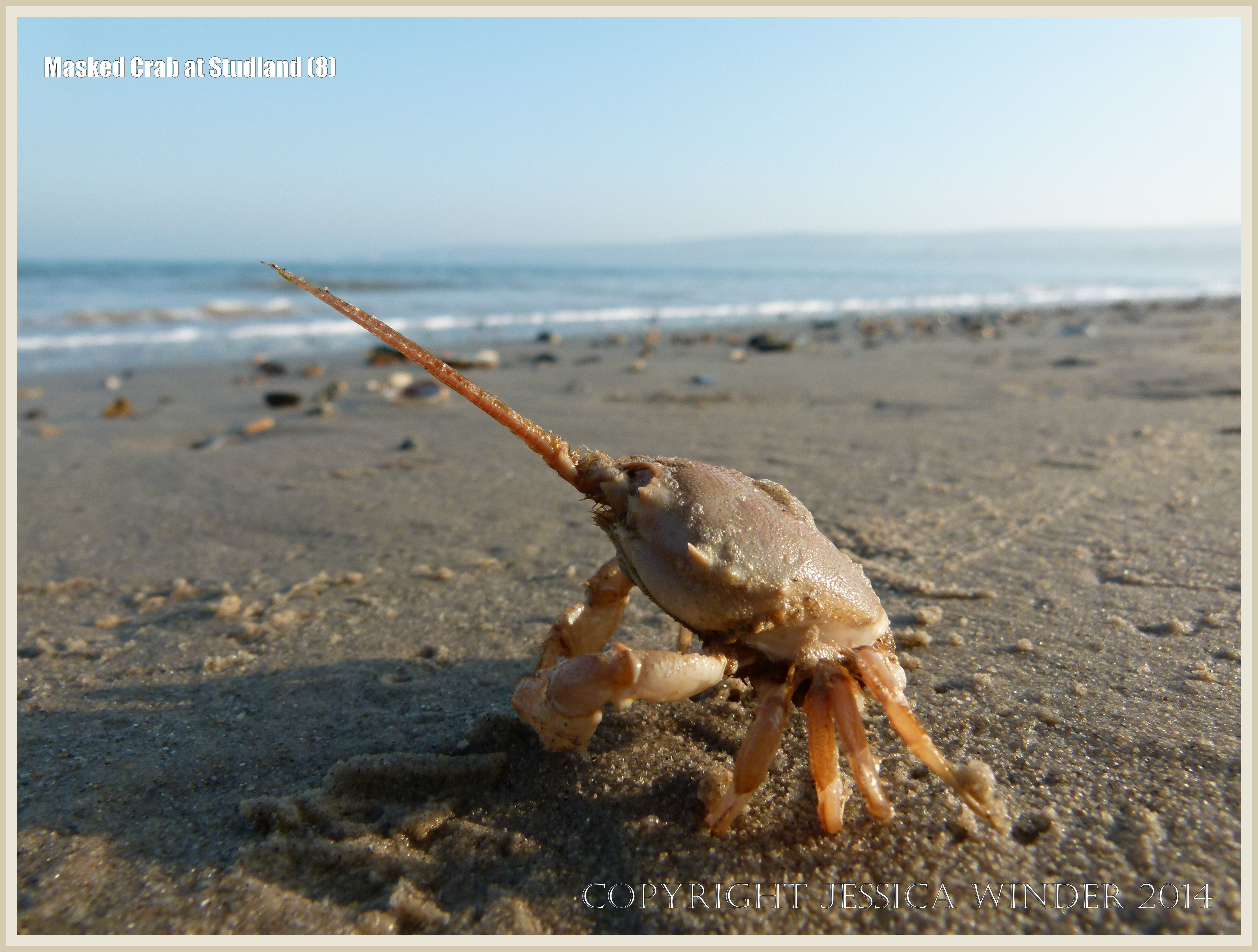 Masked Crab at Studland 8 – A Masked Crab (Corystes cassivelaunus Pennant) waiting for the tide to come in on the sandy beach at Studland Bay in Dorset, England.