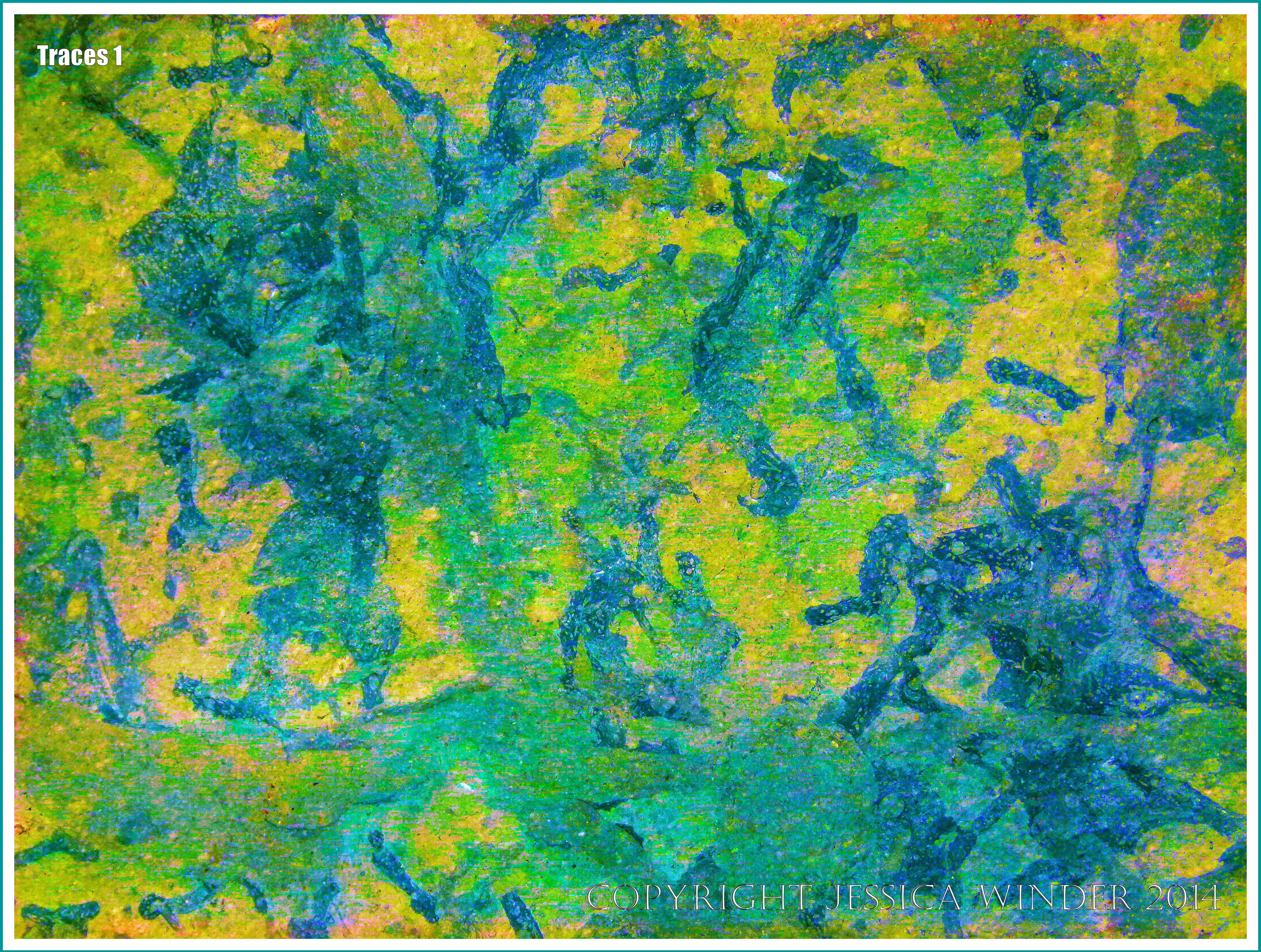 Traces 1 – Digital hue mapping of natural patterns made by trace fossils of burrows made by marine invertebrates in Blue Lias Limestone at Lyme Regis in Dorset, England.