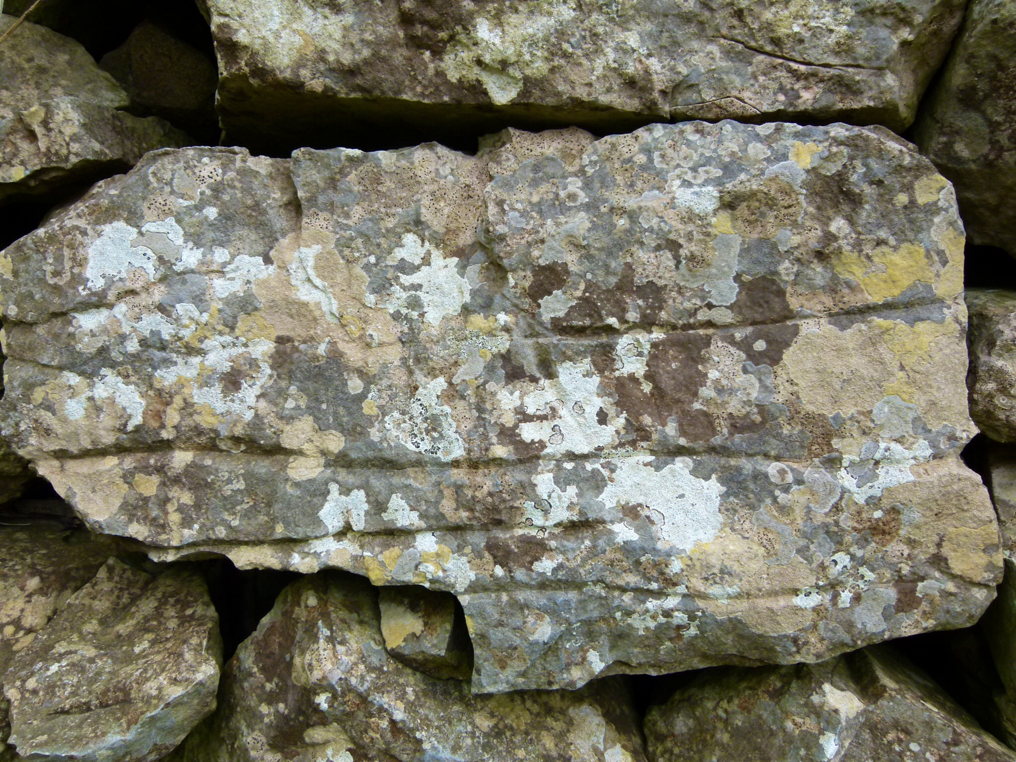 Lichens on Limestone at Mewslade 6 – Natural pattern of lichens on a dry stone wall in the valley leading down to Mewslade Bay in Gower, South Wales.