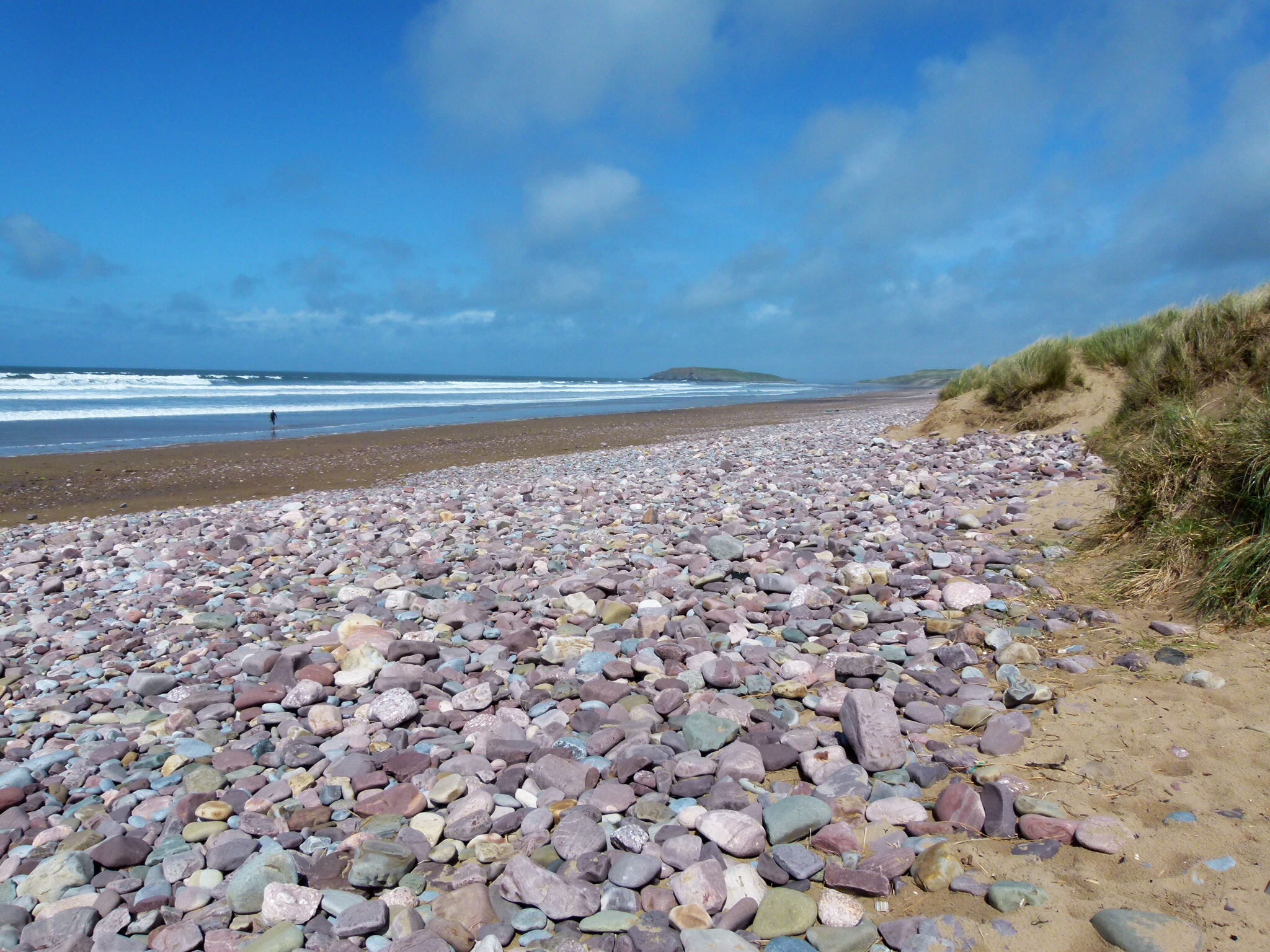 More pebbles at Rhossili 2 – View of pebbles looking north towards Burry Holms, at the Llangennith end of Rhossili beach in Gower, South Wales.