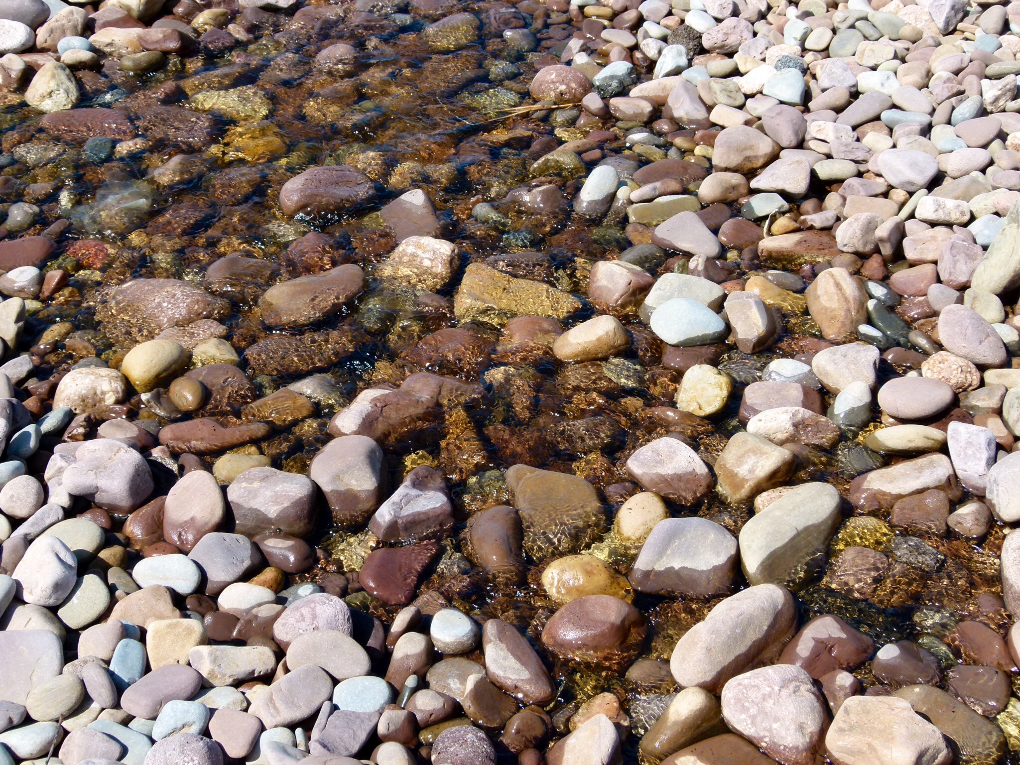 More pebbles at Rhossili 5 – The stream known as Diles Lake flowing through a thick bank of pebbles on the Llangennith end of Rhossili beach in Gower, South Wales.
