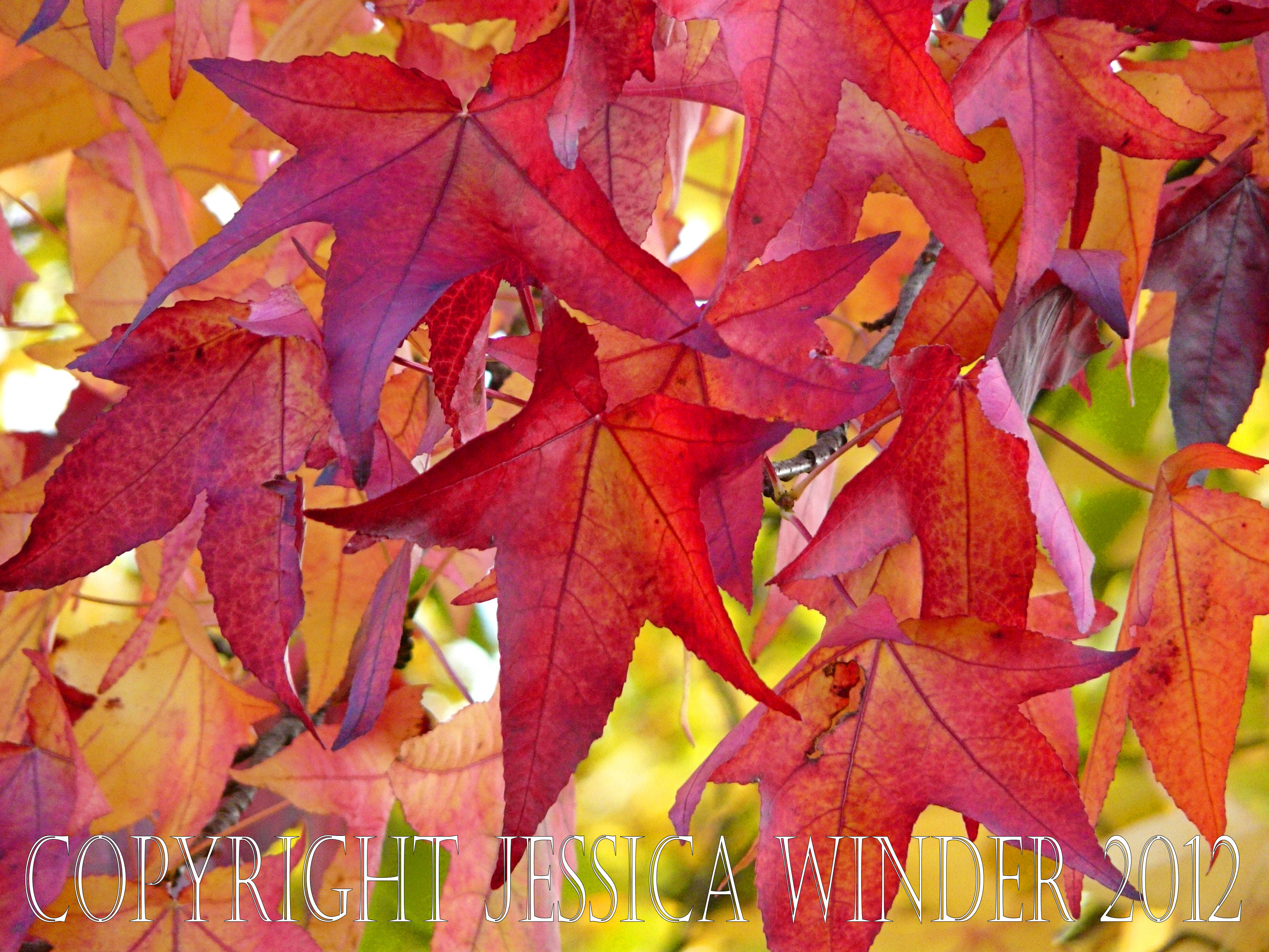 Leaves 004 – Art inspired by Nature and captured by Jessica Winder in a brightly-coloured, totally unaltered photograph of autumn leaves.