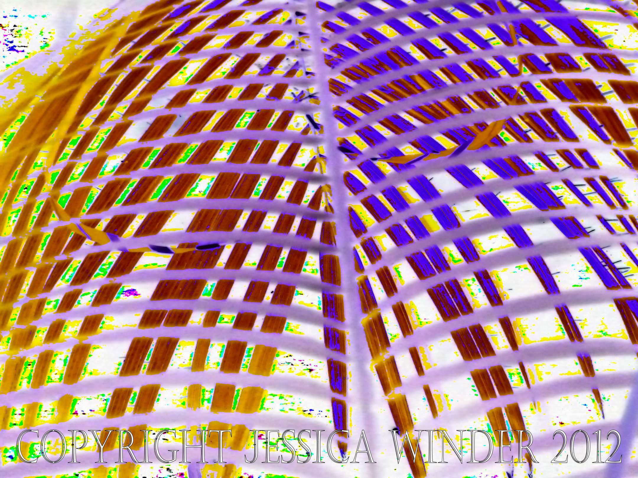 Leaves 030 – Art inspired by Nature and captured by Jessica Winder in a brightly-coloured, digitally-altered, photograph of leaves.