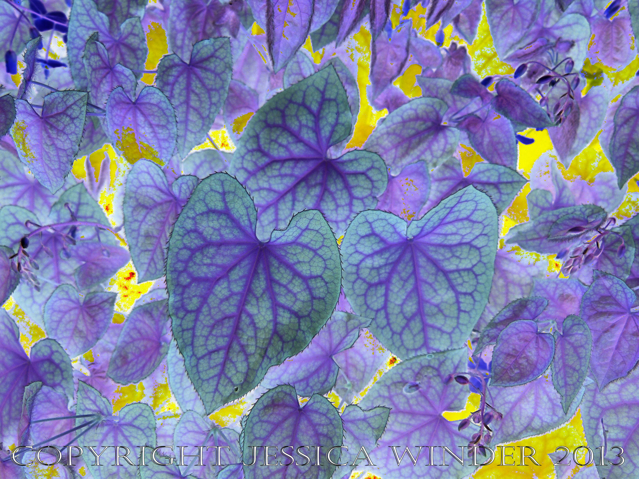 Leaves 037 – Art inspired by Nature and captured by Jessica Winder in a brightly-coloured, digitally-altered, photograph of leaves.