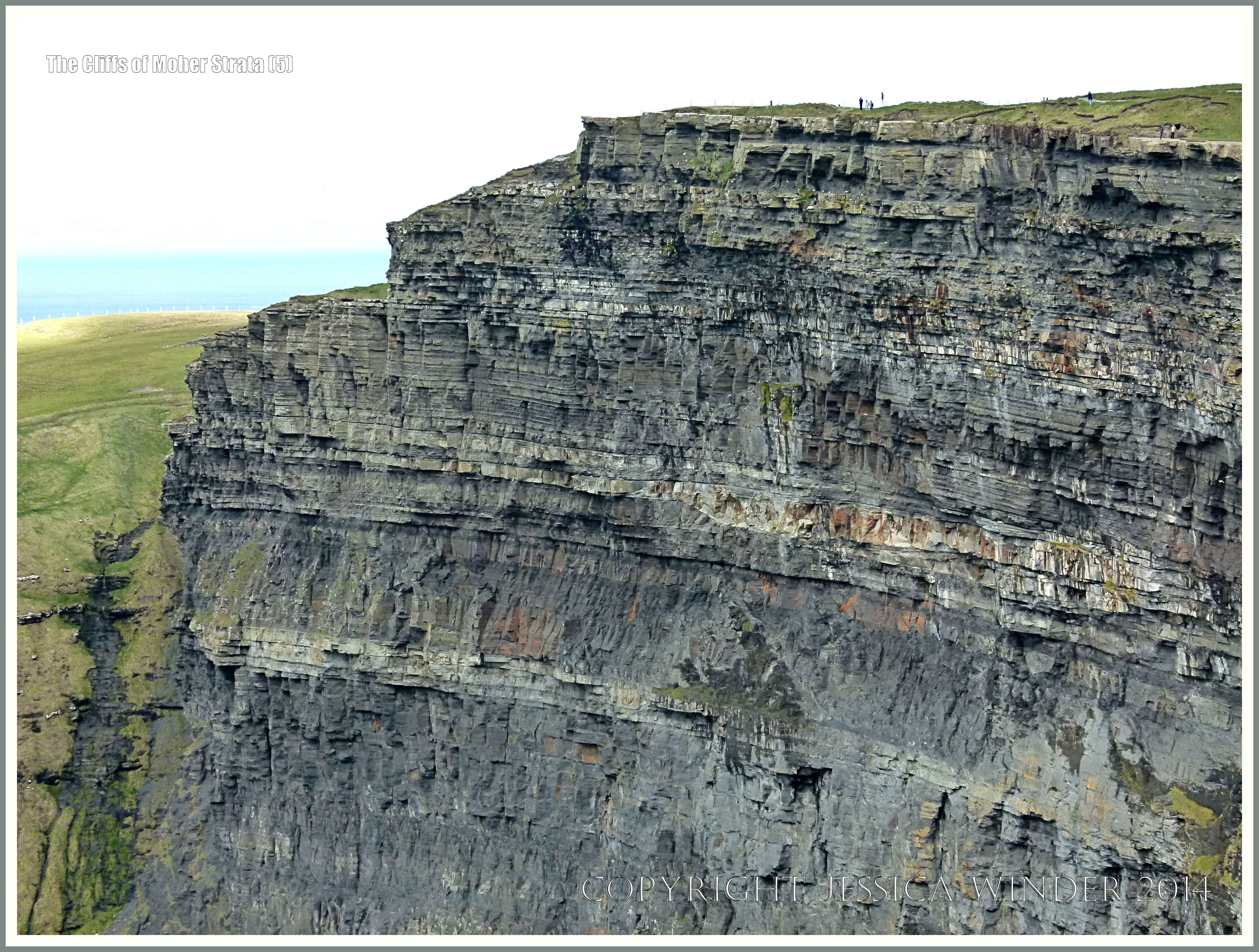 Cliffs of Moher Strata 5 – Alternating beds or strata of sandstone, siltstone, and mudstone, formed by a major river delta 320 million years ago in the Upper Carboniferous Period (Namurian) in the Cliffs of Moher in County Clare on the western Atlantic coast of Ireland