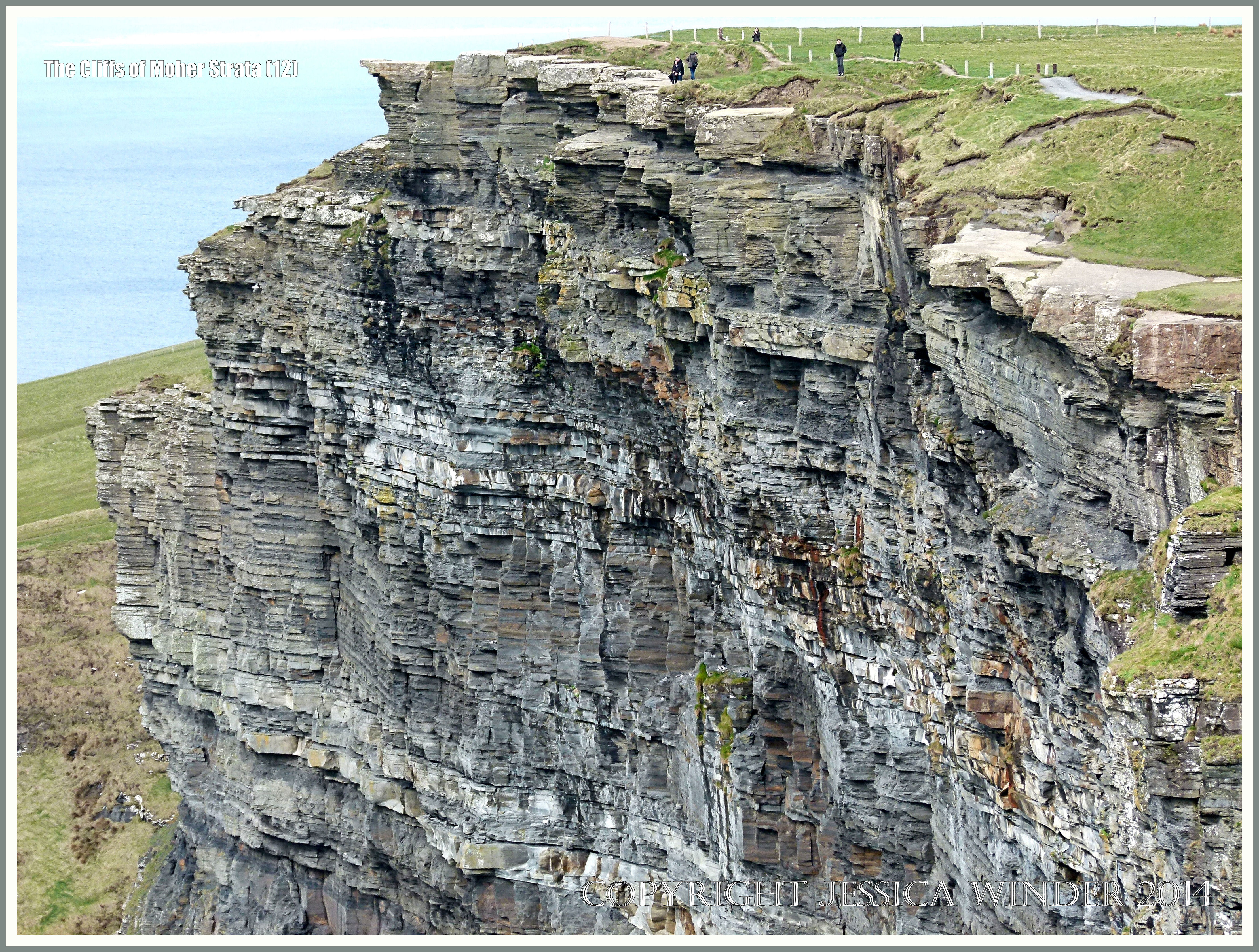 Cliffs of Moher Strata 12 – Alternating beds or strata of sandstone, siltstone, and mudstone, formed by a major river delta 320 million years ago in the Upper Carboniferous Period (Namurian) in the Cliffs of Moher in County Clare on the western Atlantic coast of Ireland