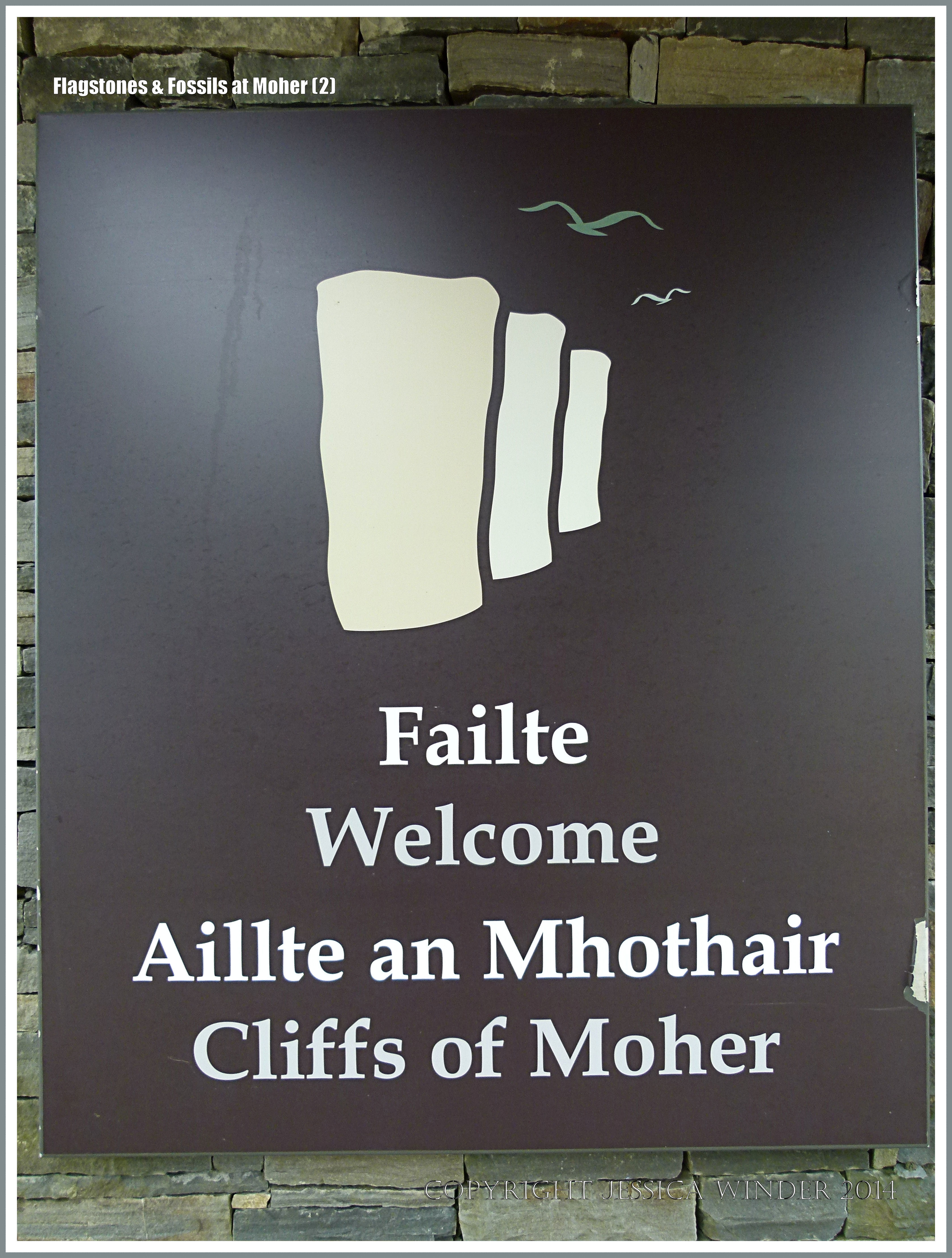 Flagstones & Fossils at Moher 2 – Welcome sign for the Cliffs of Moher on the west coast of Ireland in County Clare.