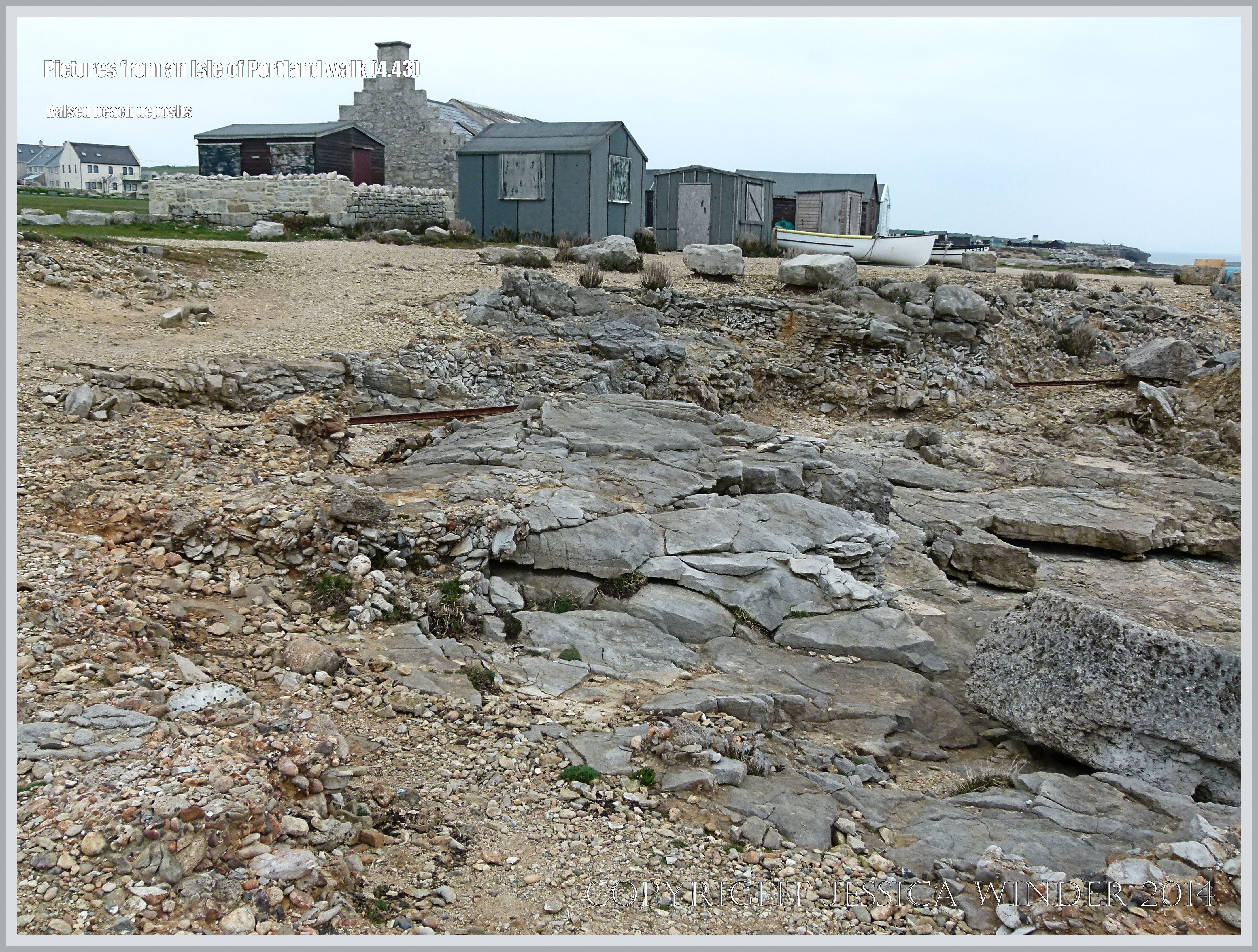 IPortland Raised Beach Deposits 4.43 – Pleistocene, Ipswichian, last interglacial, raised beach deposits of pebbles and beach stones mixed with seashells, dating from about 125, 000 years BP when the sea level was between 6.95 and 10.75 metres higher than present levels. Photographed on the Isle of Portland, Dorset, England.