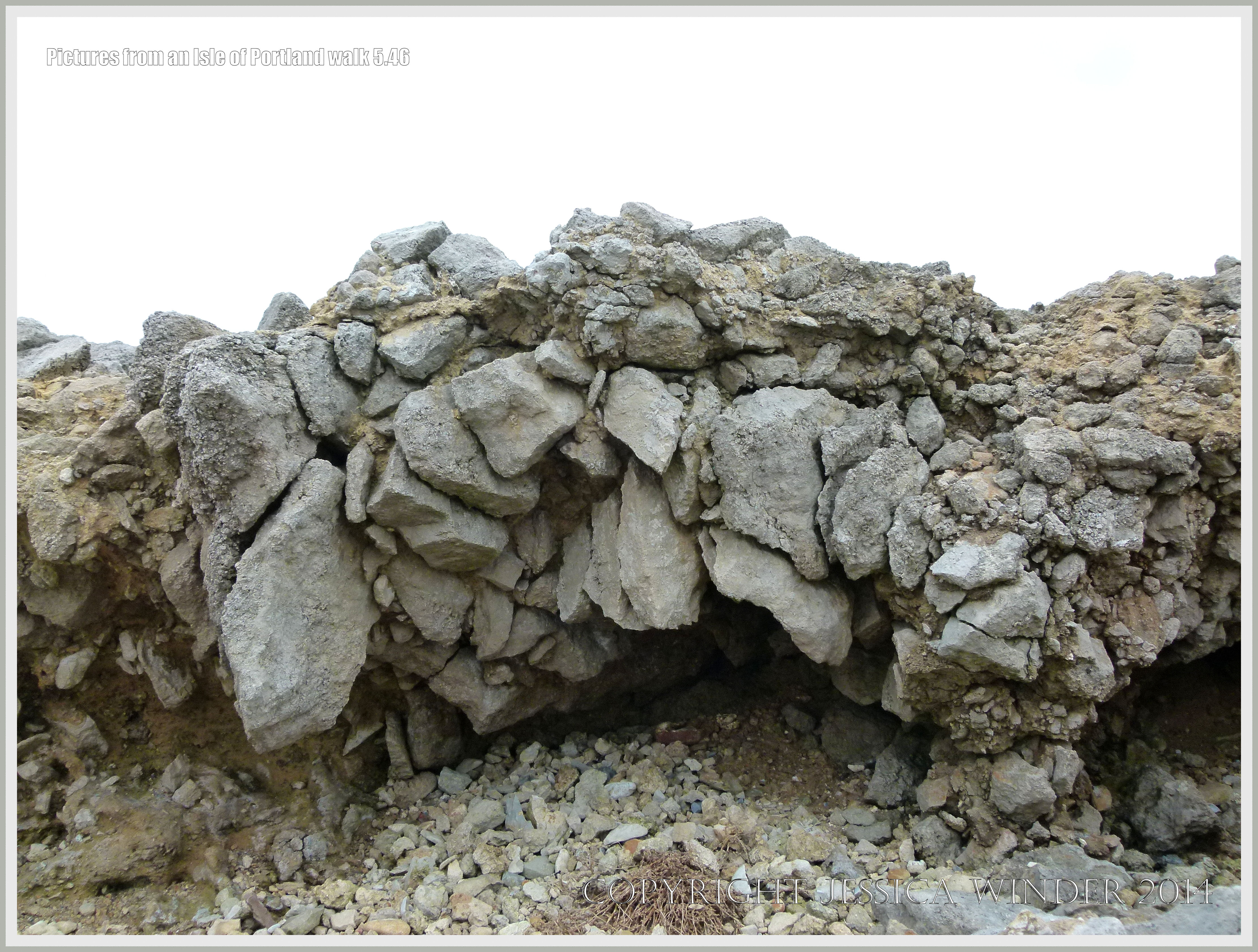 Isle of Portland Walk 5.46 – Possible periglacial rock structures in Upper Jurassic limestones beneath the lower raised beach on the Isle of Portland, Dorset, England.