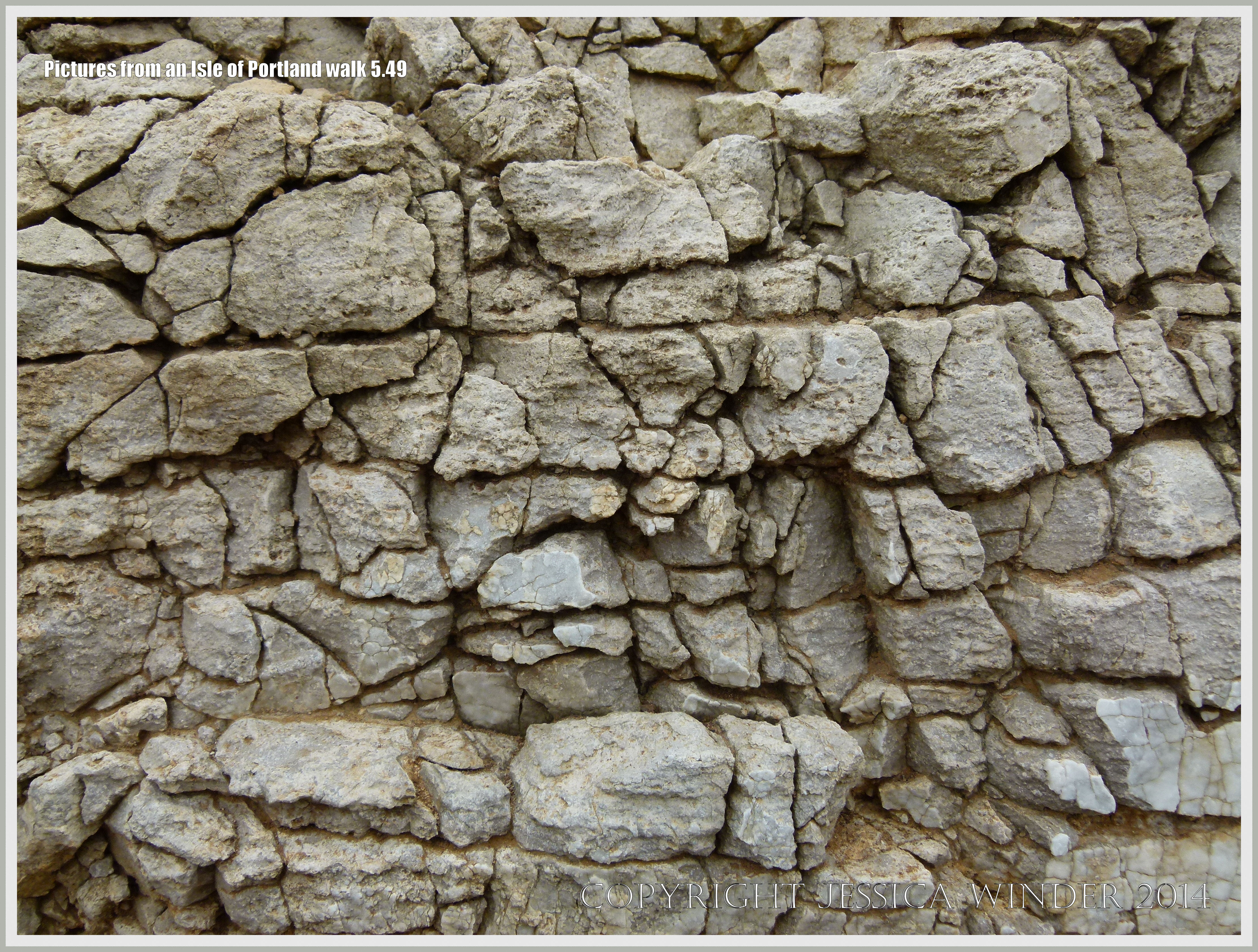 Isle of Portland Walk 5.49 – Possible periglacial rock structures in Upper Jurassic limestones beneath the lower raised beach on the Isle of Portland, Dorset, England.