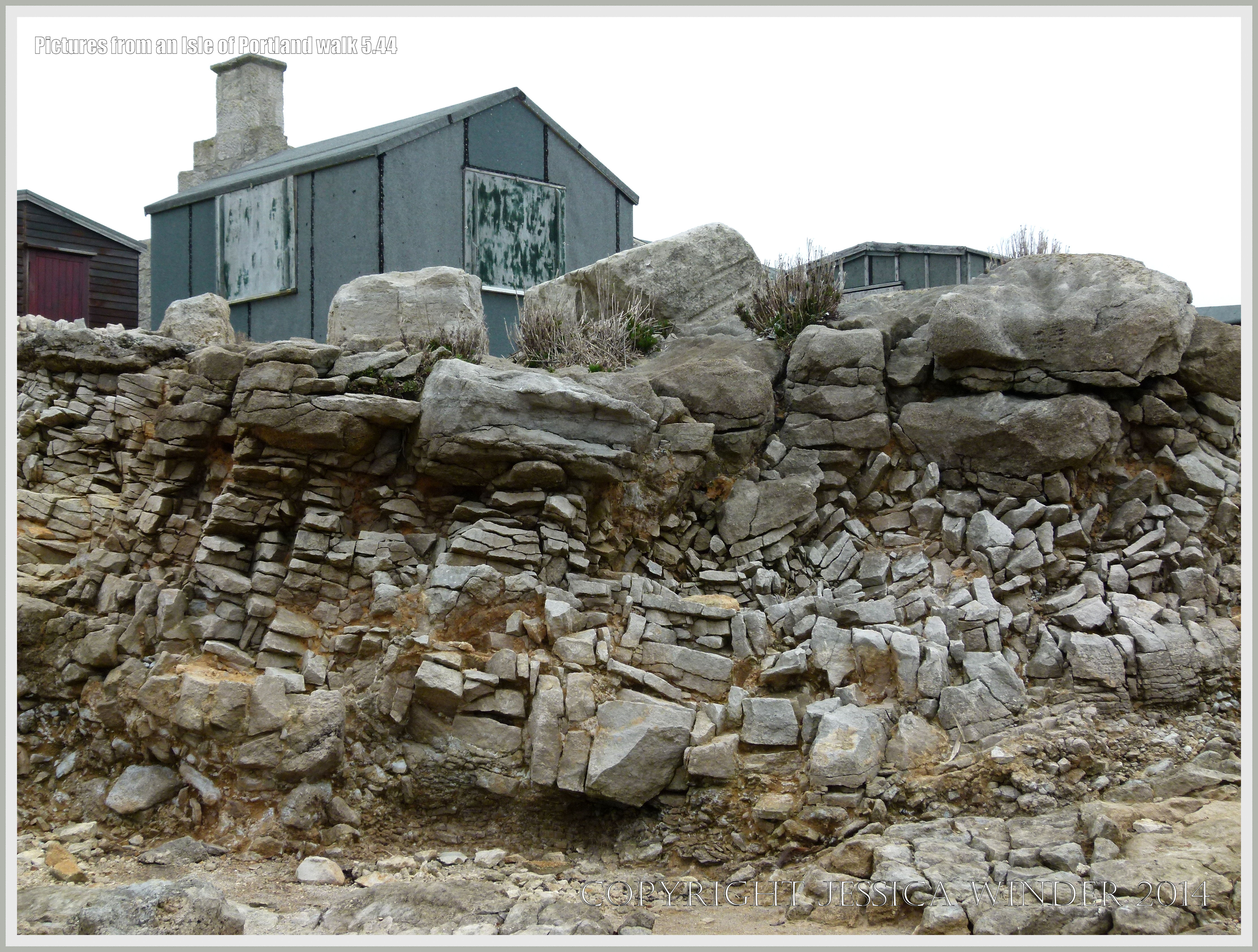Isle of Portland Walk 5.44 – Possible periglacial rock structures in Upper Jurassic limestones beneath the lower raised beach on the Isle of Portland, Dorset, England.