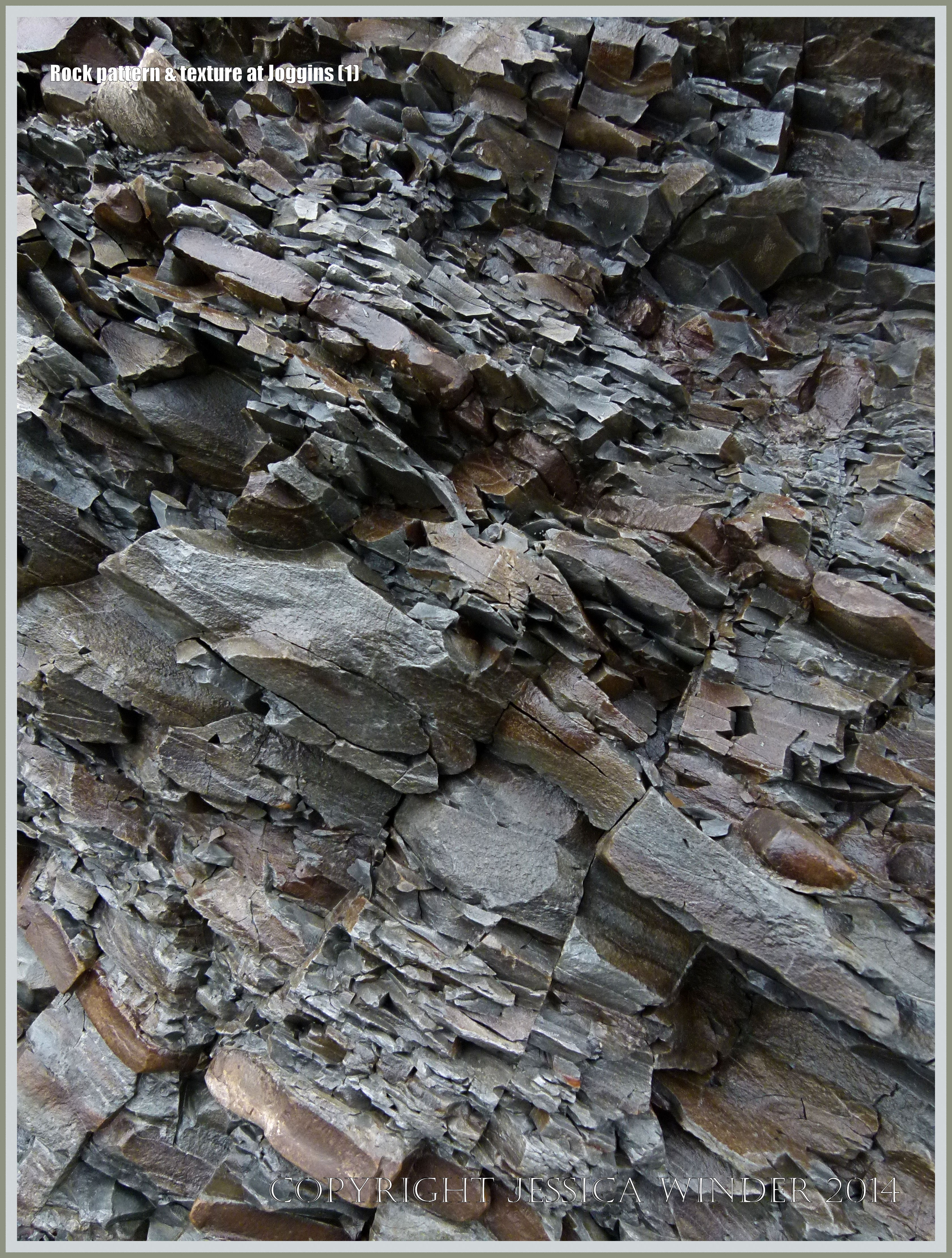 Rock Pattern & Texture at Joggins 1 – Detail of the natural pattern and texture of Upper Carboniferous Period sedimentary rock strata at Joggins Fossil Cliffs the Nova Scotia shore of the Bay of Fundy in Canada.