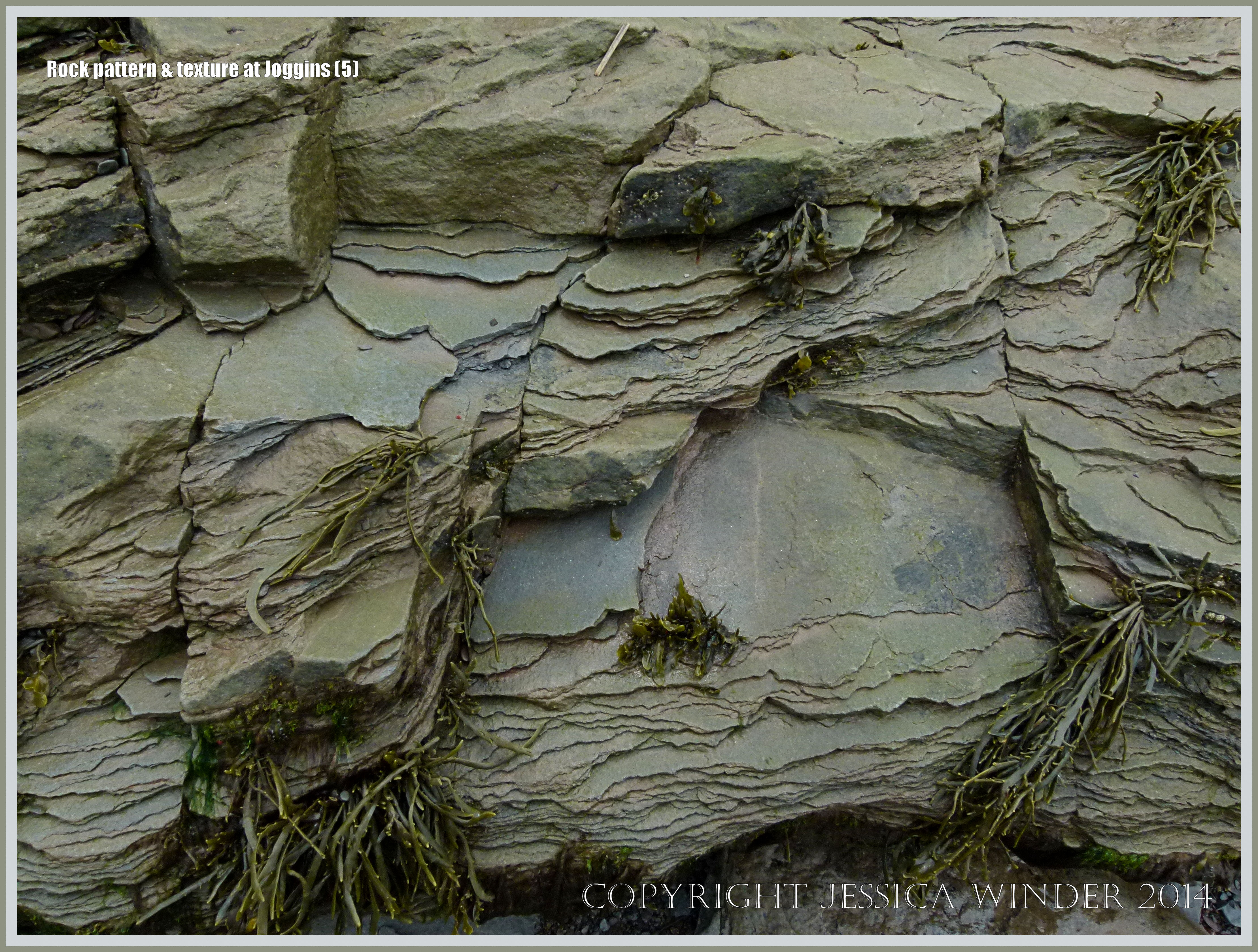Rock Pattern & Texture at Joggins 5 – Detail of the natural pattern and texture of Upper Carboniferous Period sedimentary rock strata at Joggins Fossil Cliffs the Nova Scotia shore of the Bay of Fundy in Canada.