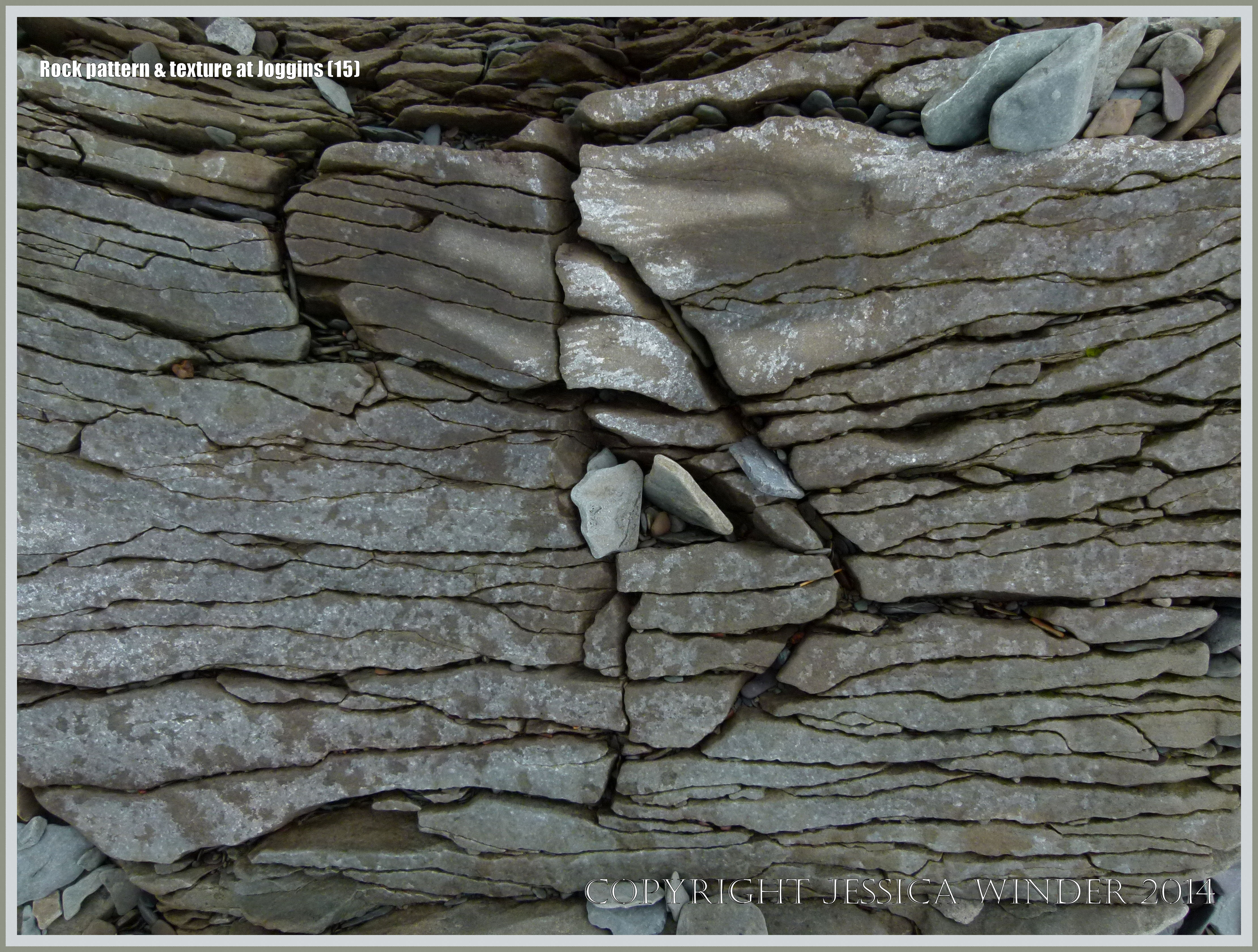 Rock Pattern & Texture at Joggins 15 – Detail of the natural pattern and texture of Upper Carboniferous Period sedimentary rock strata at Joggins Fossil Cliffs the Nova Scotia shore of the Bay of Fundy in Canada.
