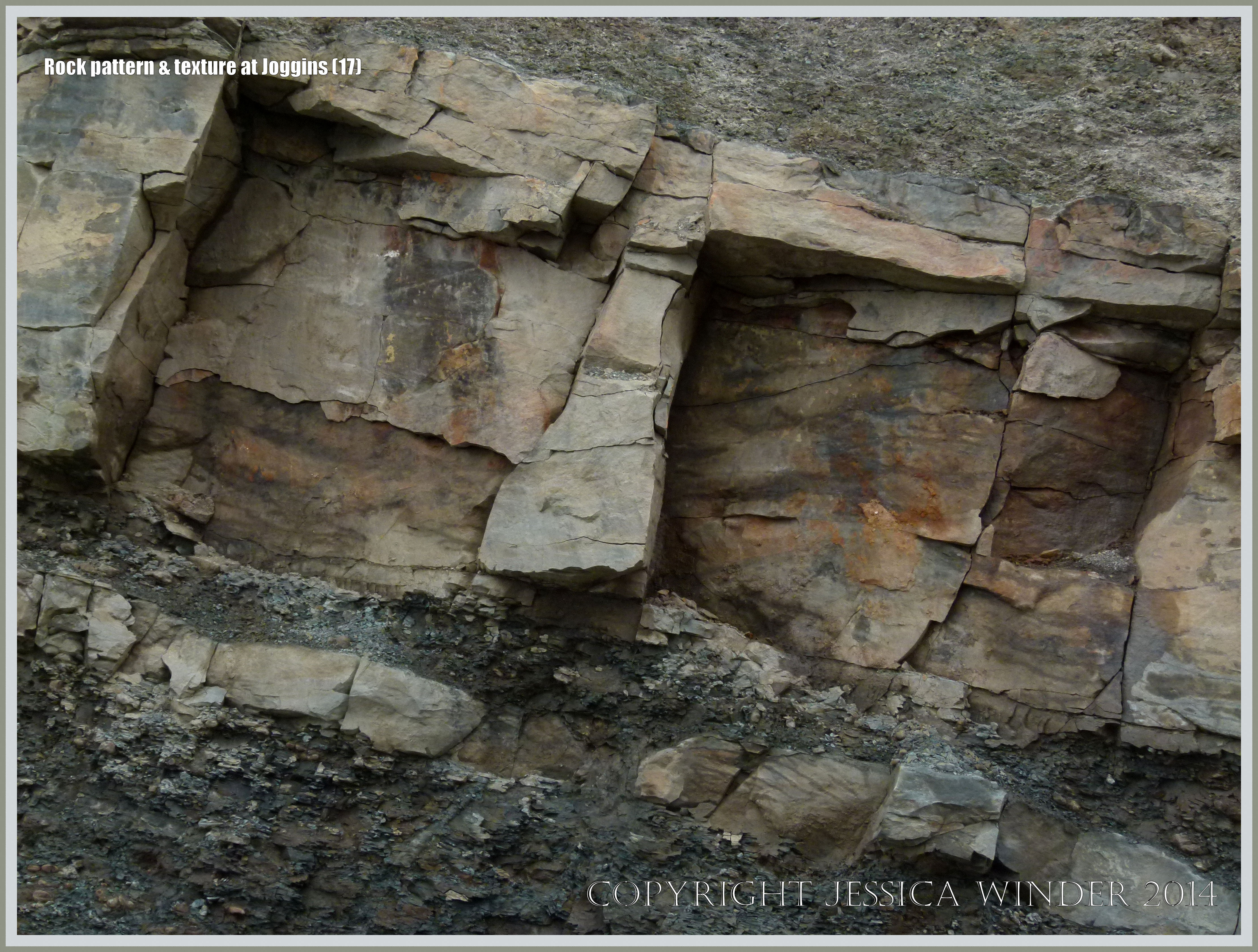 Rock Pattern & Texture at Joggins 17 – Detail of the natural pattern and texture of Upper Carboniferous Period sedimentary rock strata at Joggins Fossil Cliffs the Nova Scotia shore of the Bay of Fundy in Canada.