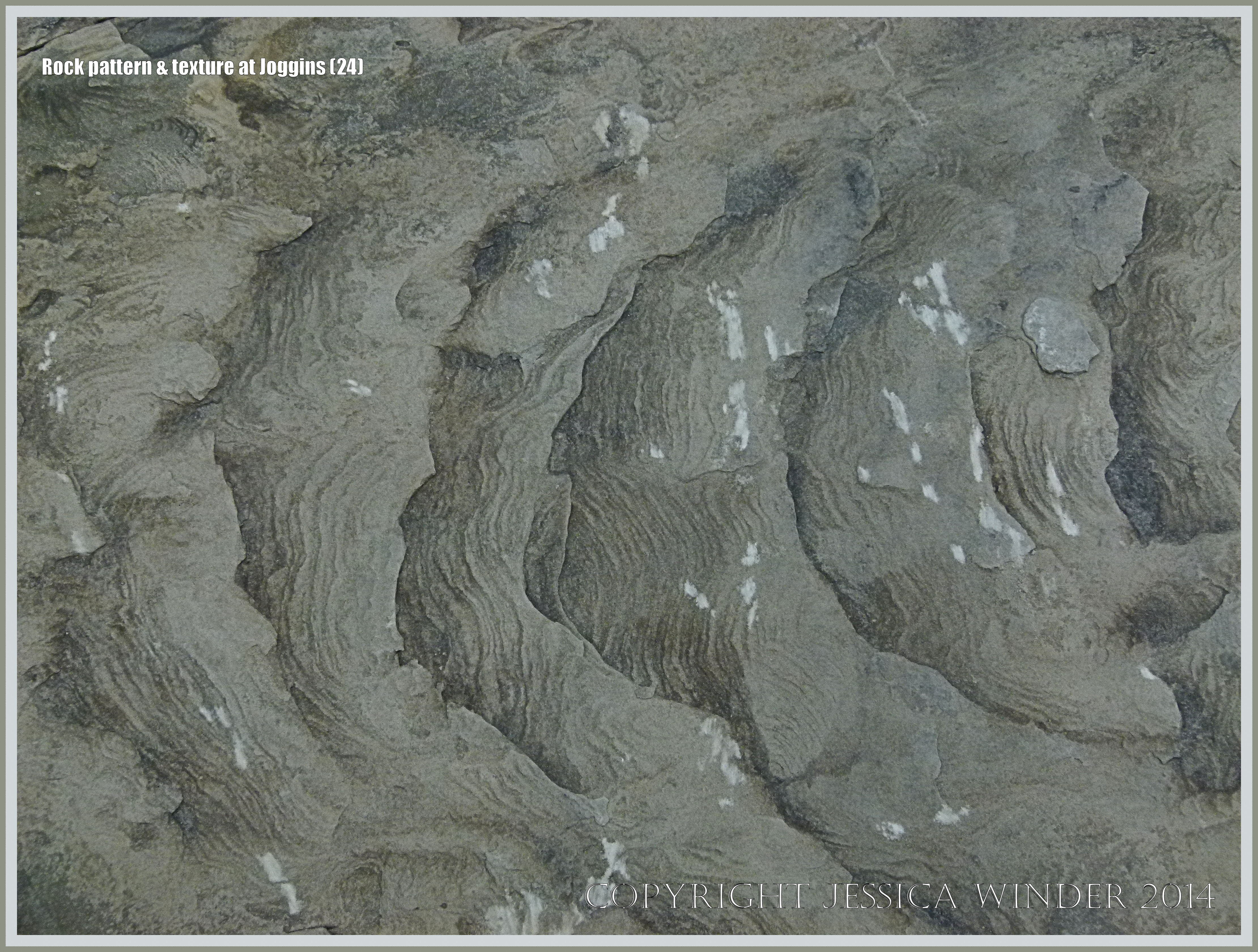 Rock Pattern & Texture at Joggins 24 – Detail of the natural pattern and texture of Upper Carboniferous Period sedimentary rock strata at Joggins Fossil Cliffs the Nova Scotia shore of the Bay of Fundy in Canada.