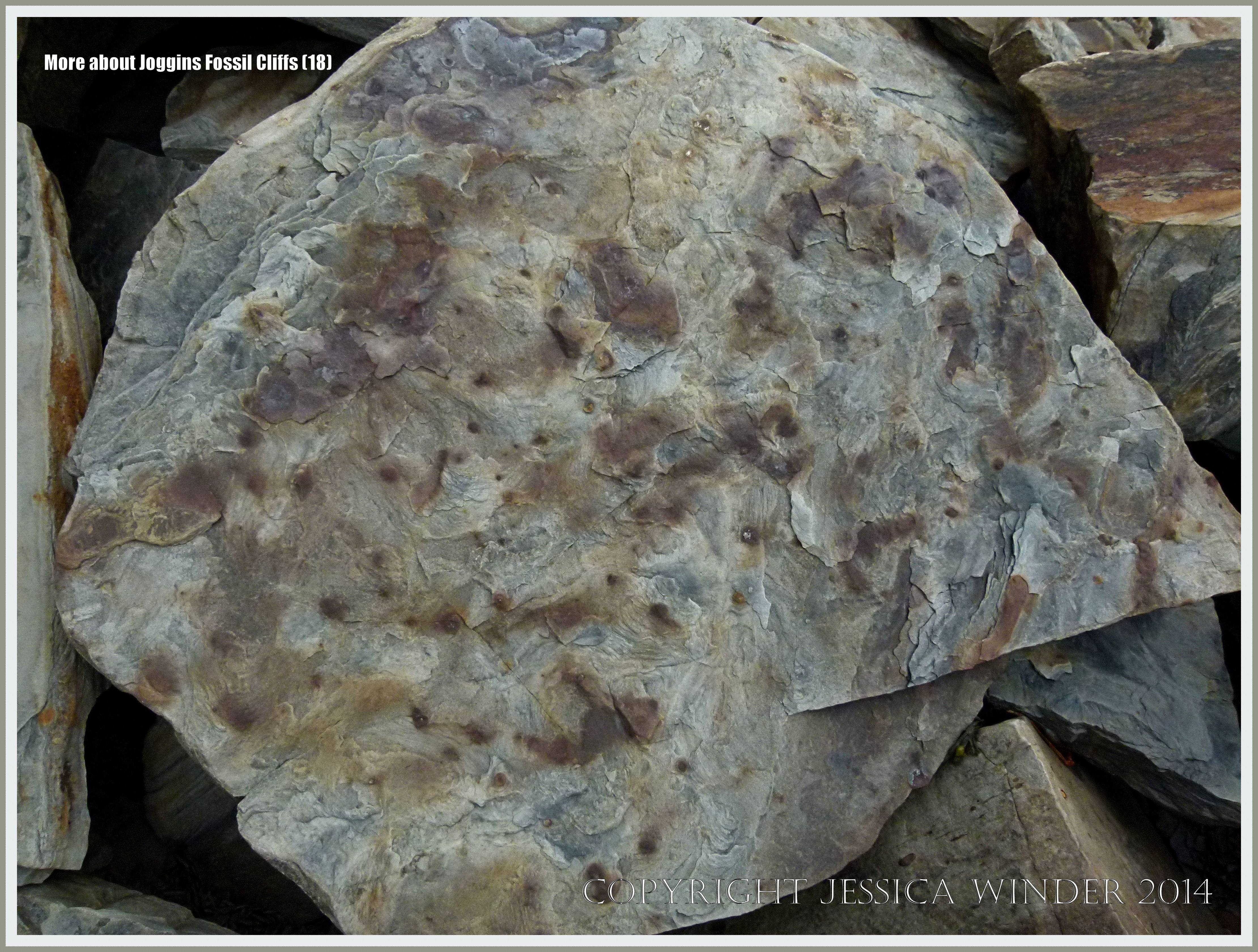 More about Joggins Fossil Cliffs 18 – Clay galls or possibly small siderite nodules at Joggins Fossil Cliffs in Nova Scotia, Canada.