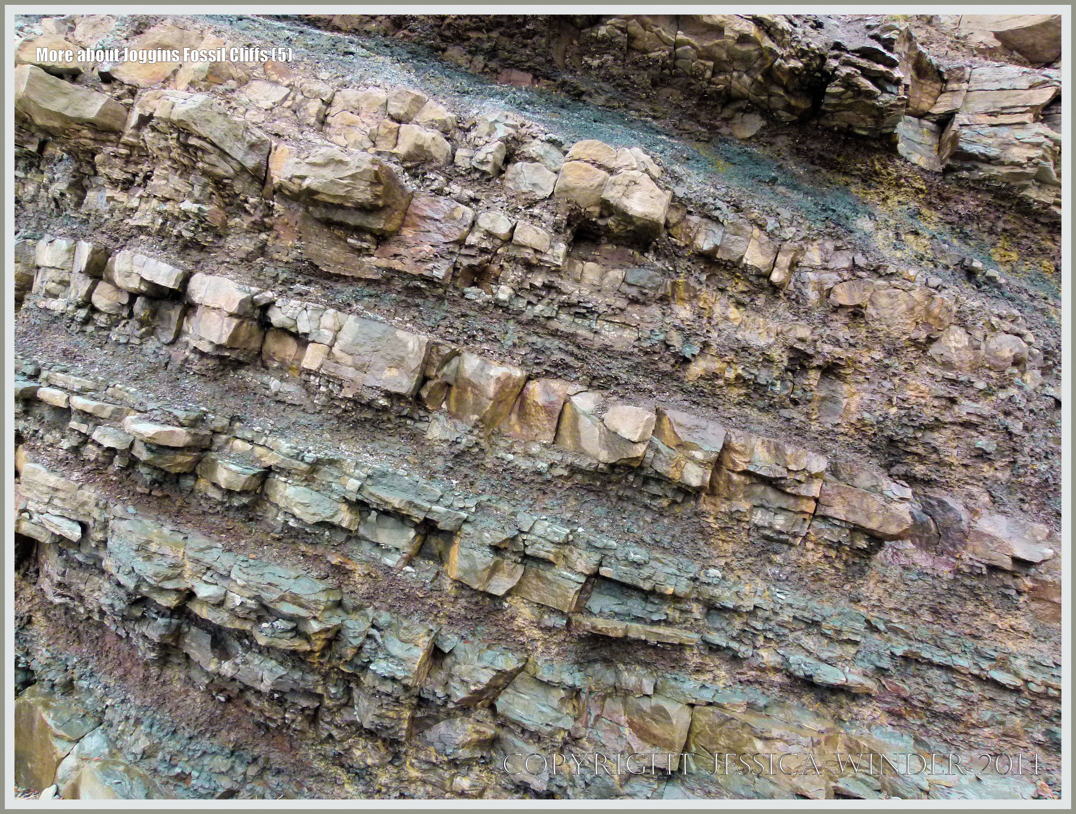 More about Joggins Fossil Cliffs 5 – Rock strata inclined at an angle of about 20 degrees at Joggins Fossil Cliffs in Nova Scotia, Canada.