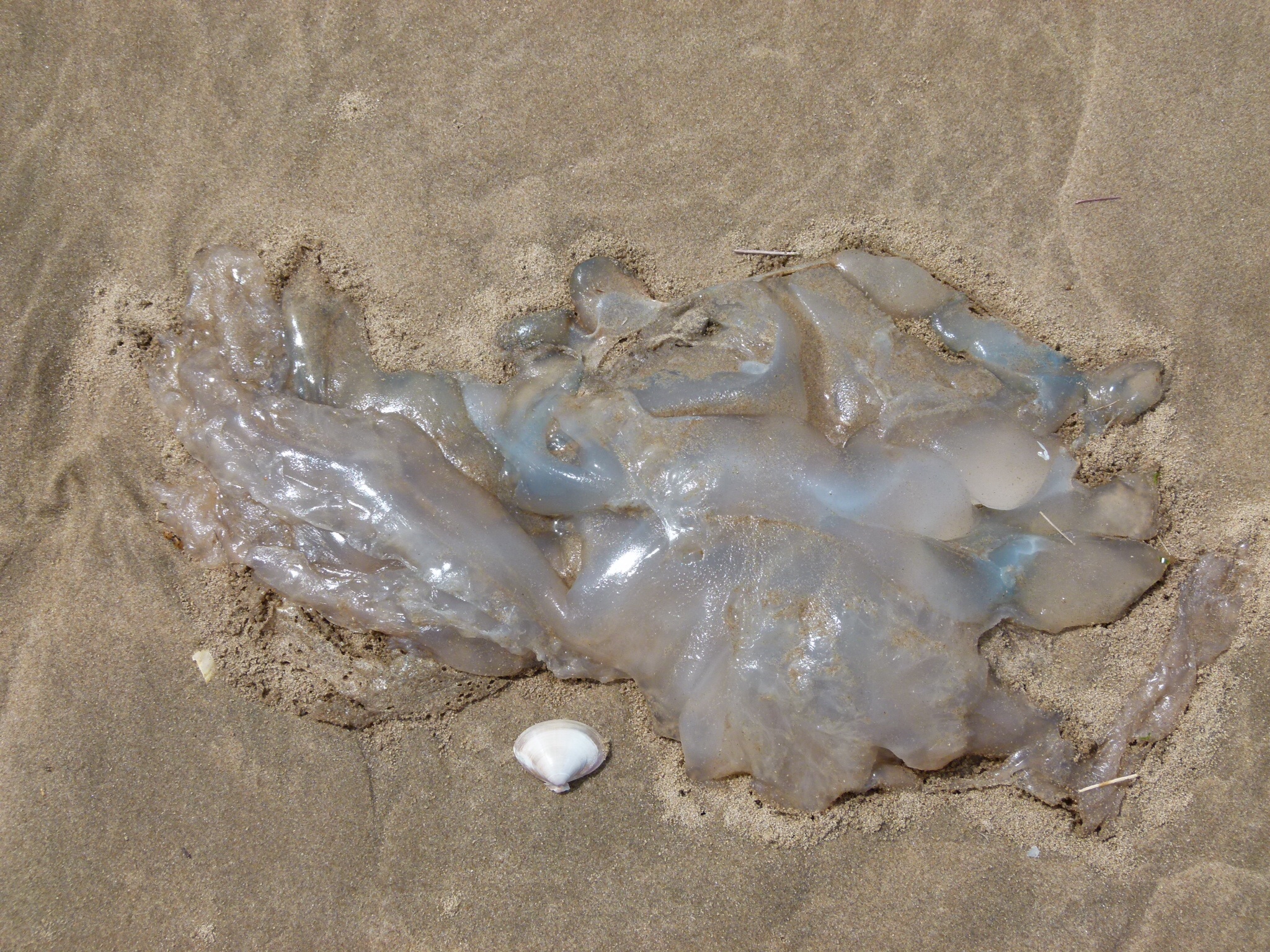 Rhossili Jellyfish 18 – Rhizostoma octopus (Linnaeus), the Barrel Jellyfish, stranded on the beach at Rhossili on the Gower Peninsula in South Wales on Sunday 27th July 2014.
