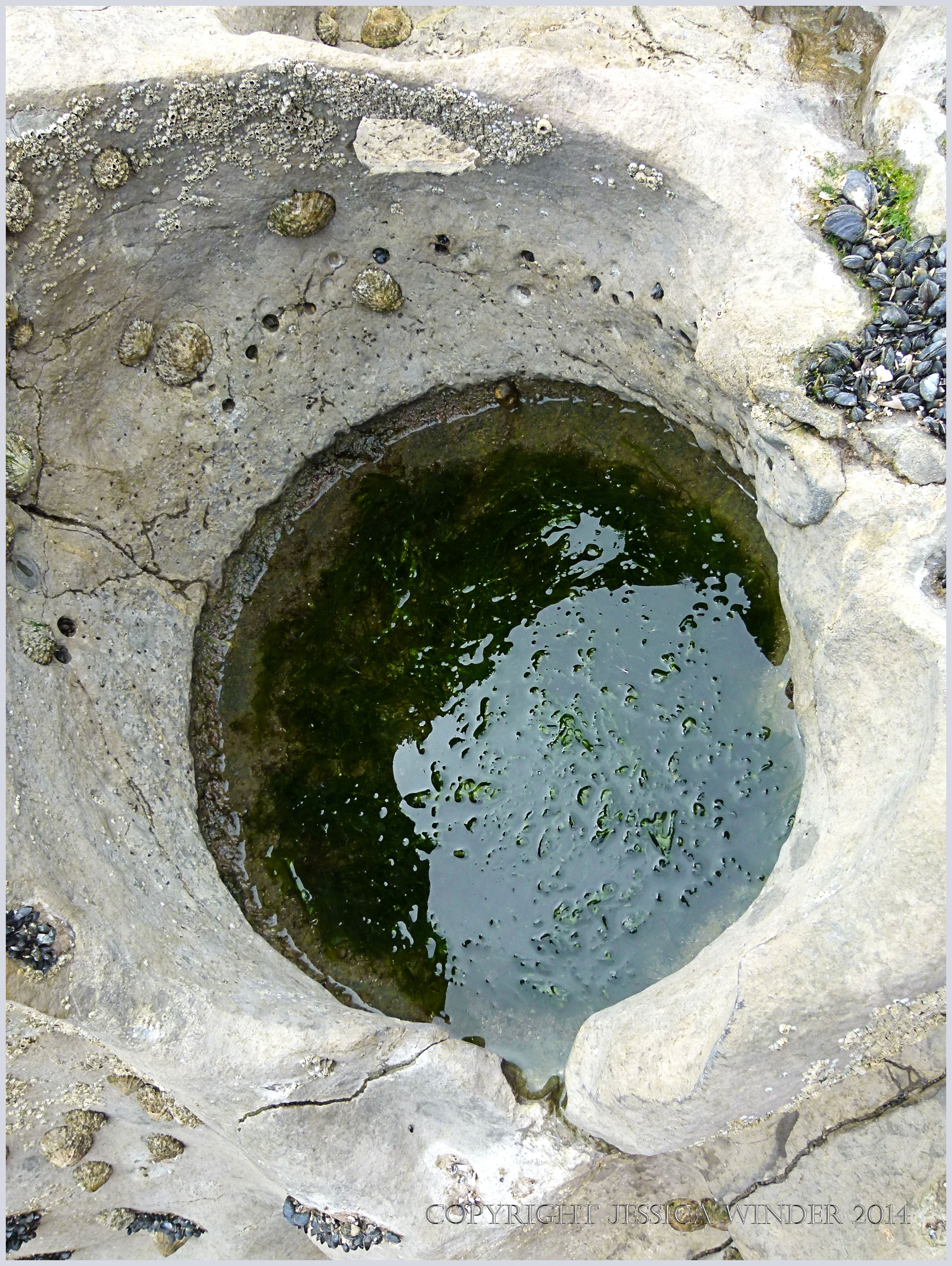 Rocks & Pools at Burry Holms 39 – Near perfectly circular rock pool eroded into the limestone at Burry Holms at Rhossili Bay on the Gower Peninsula in South Wales