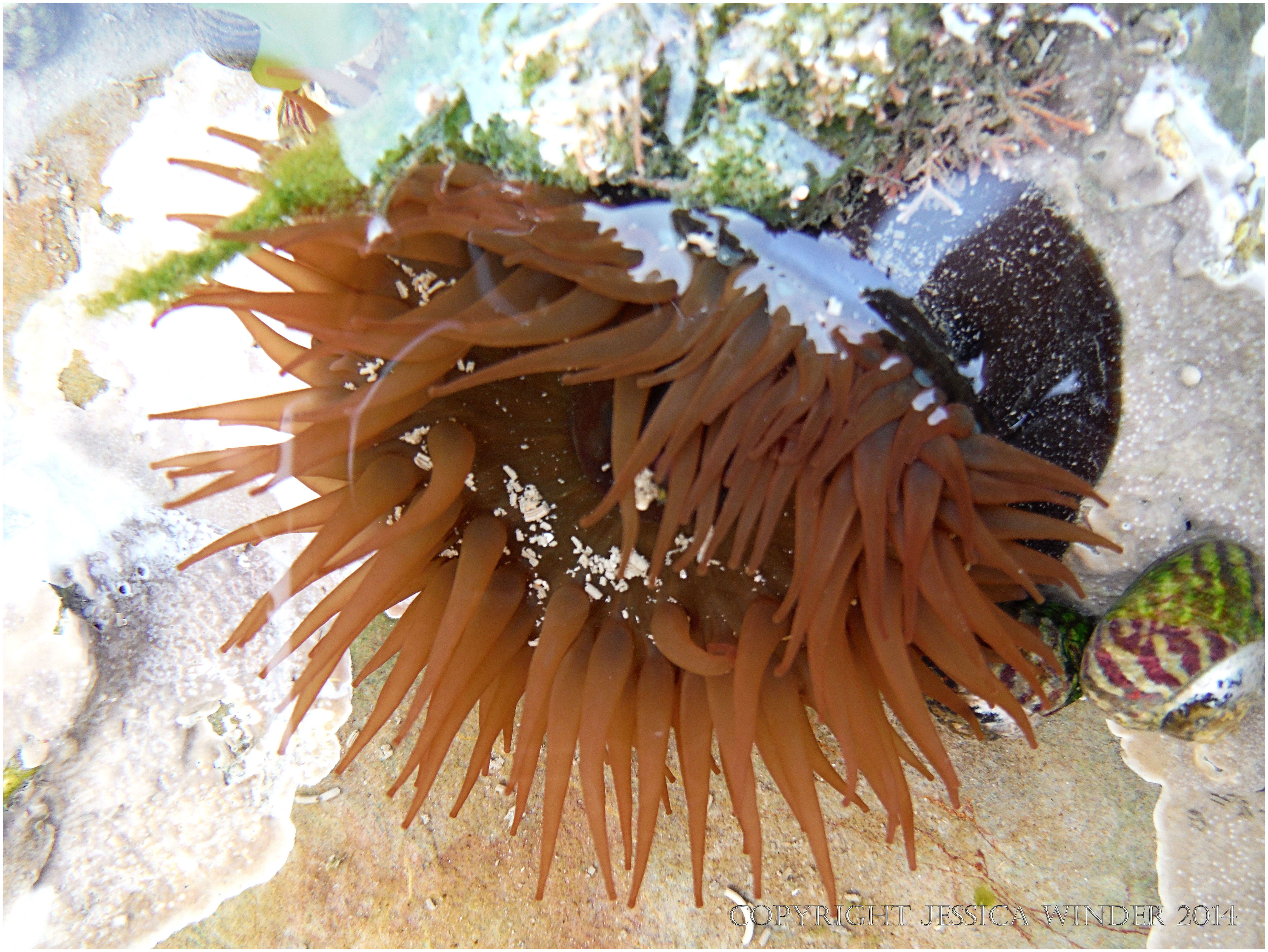 016 Out on the Causeway – Red Beadlet anemone (Actinia equina) with extended tentacles under water in a small pool on the Worms Head Causeway in Gower, South Wales.