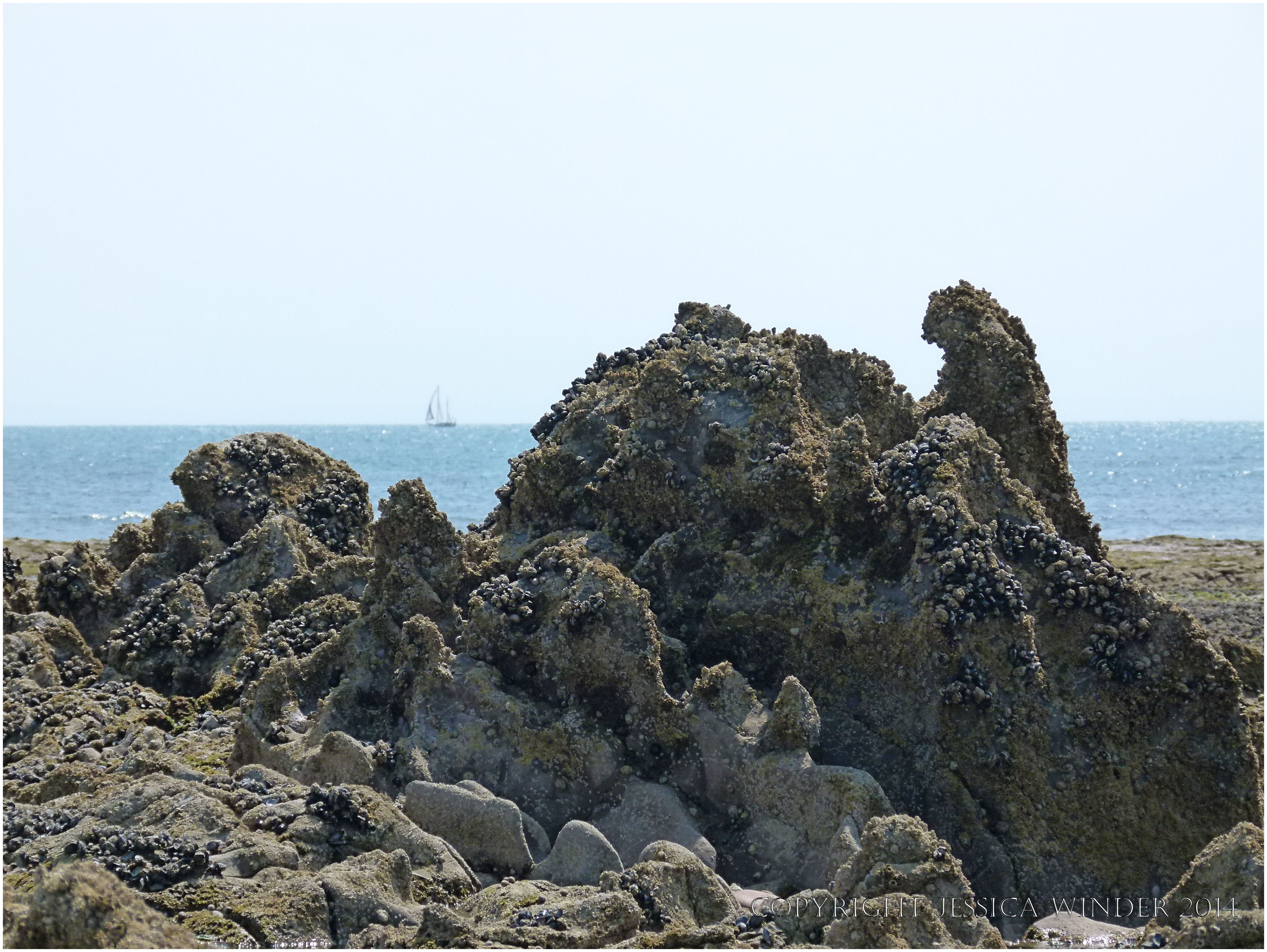 027 Out on the Causeway – Strangely eroded shapes in Carboniferous Limestone rocks standing proud of the generally flattened terrain on the centre of the Worms Head Causeway in Gower, South Wales