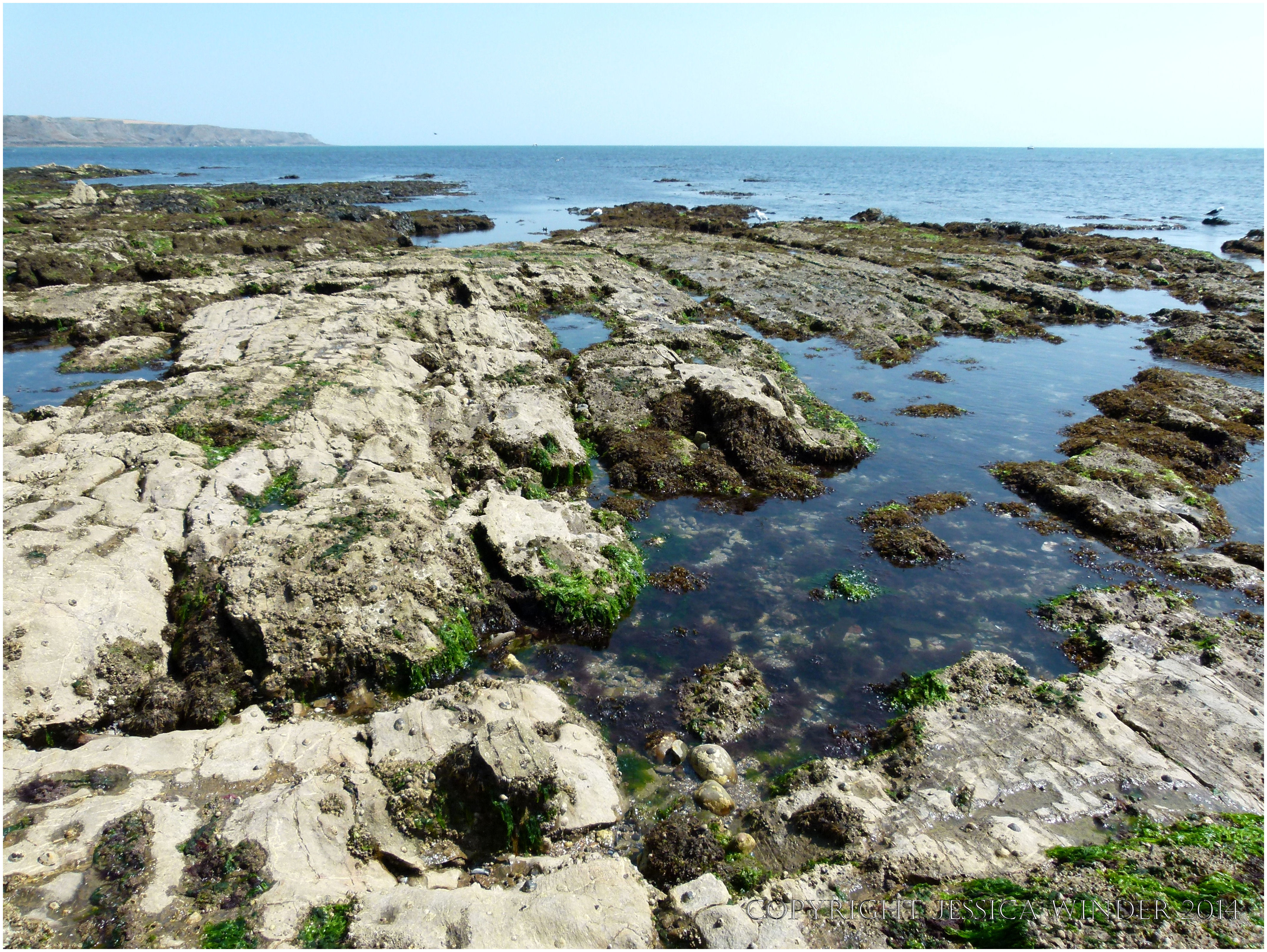 054 Out on the Causeway – Water-filled channels and pools at the eastern waters edge of in the central area of the Worms Head Causeway on the Gower Peninsula in South Wales.
