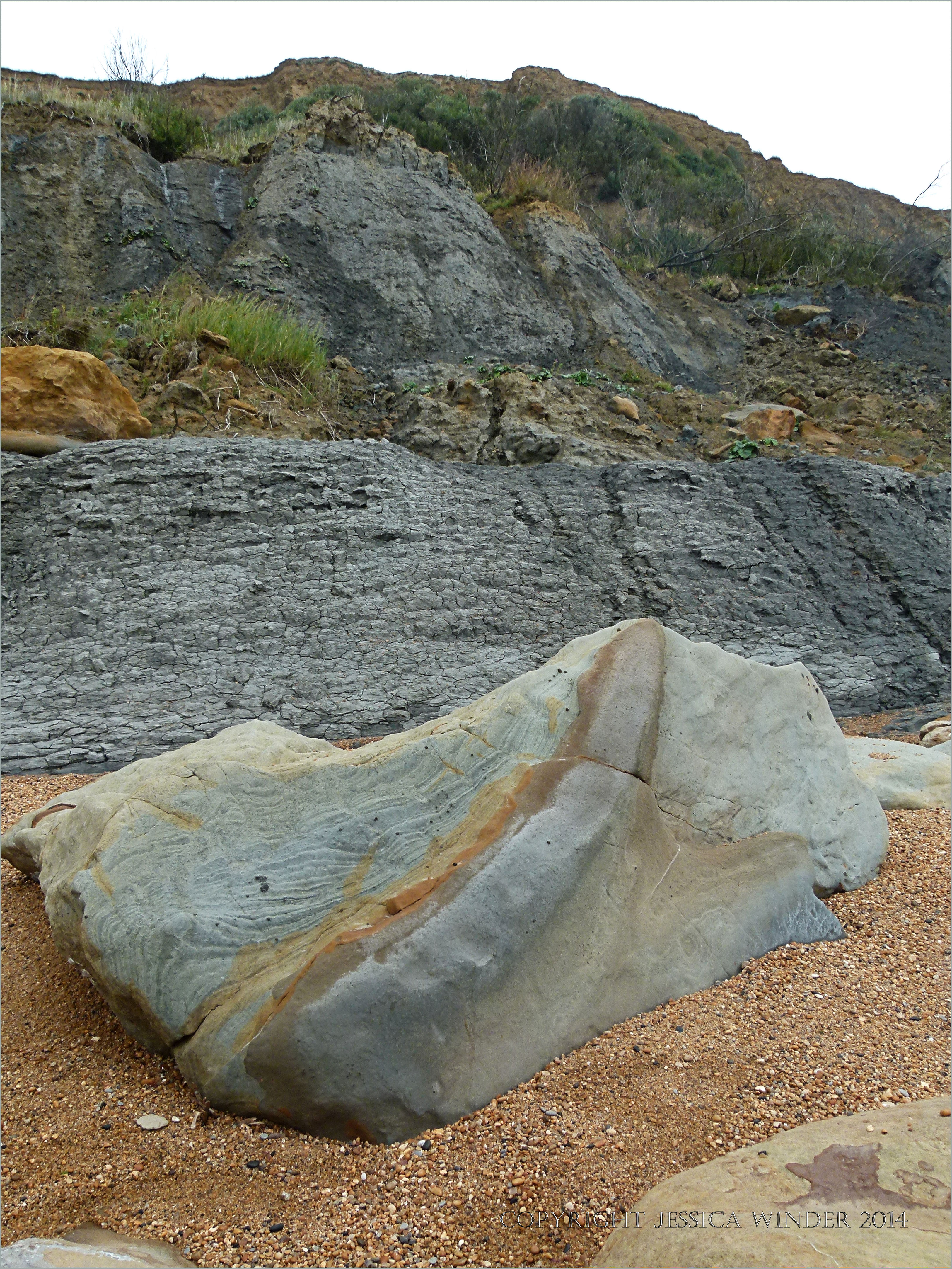Beach Boulders at Eype 61 – Rocks on the beach at Eype in Dorset, England, which is part of the Jurassic Coast World Heritage Site.