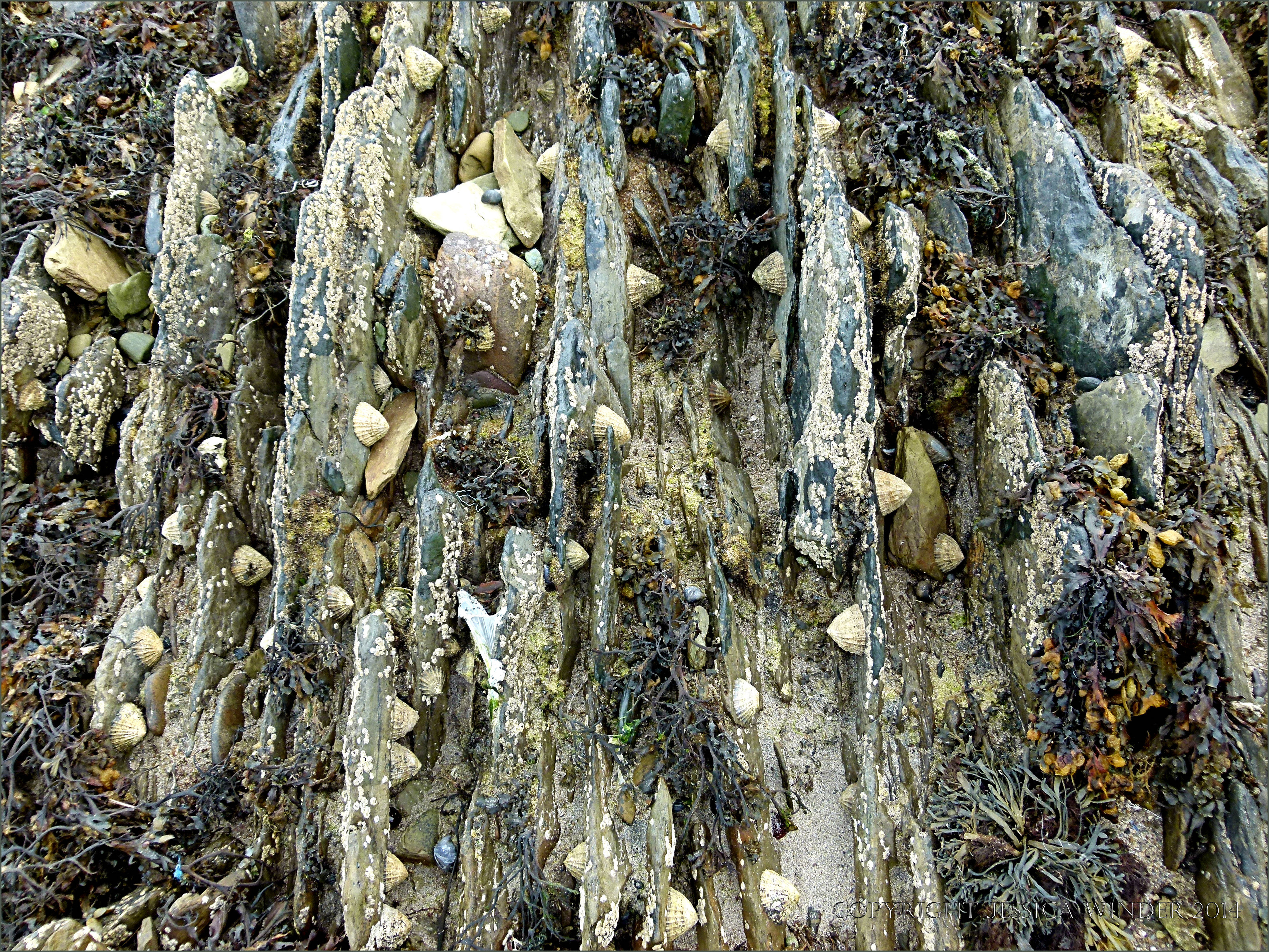 Ferriters Cove 69 – Silurian rocks with limpets attached at the north end of Ferriters Cove on the Dingle Peninsula in Ireland along the Wild Atlantic Way.