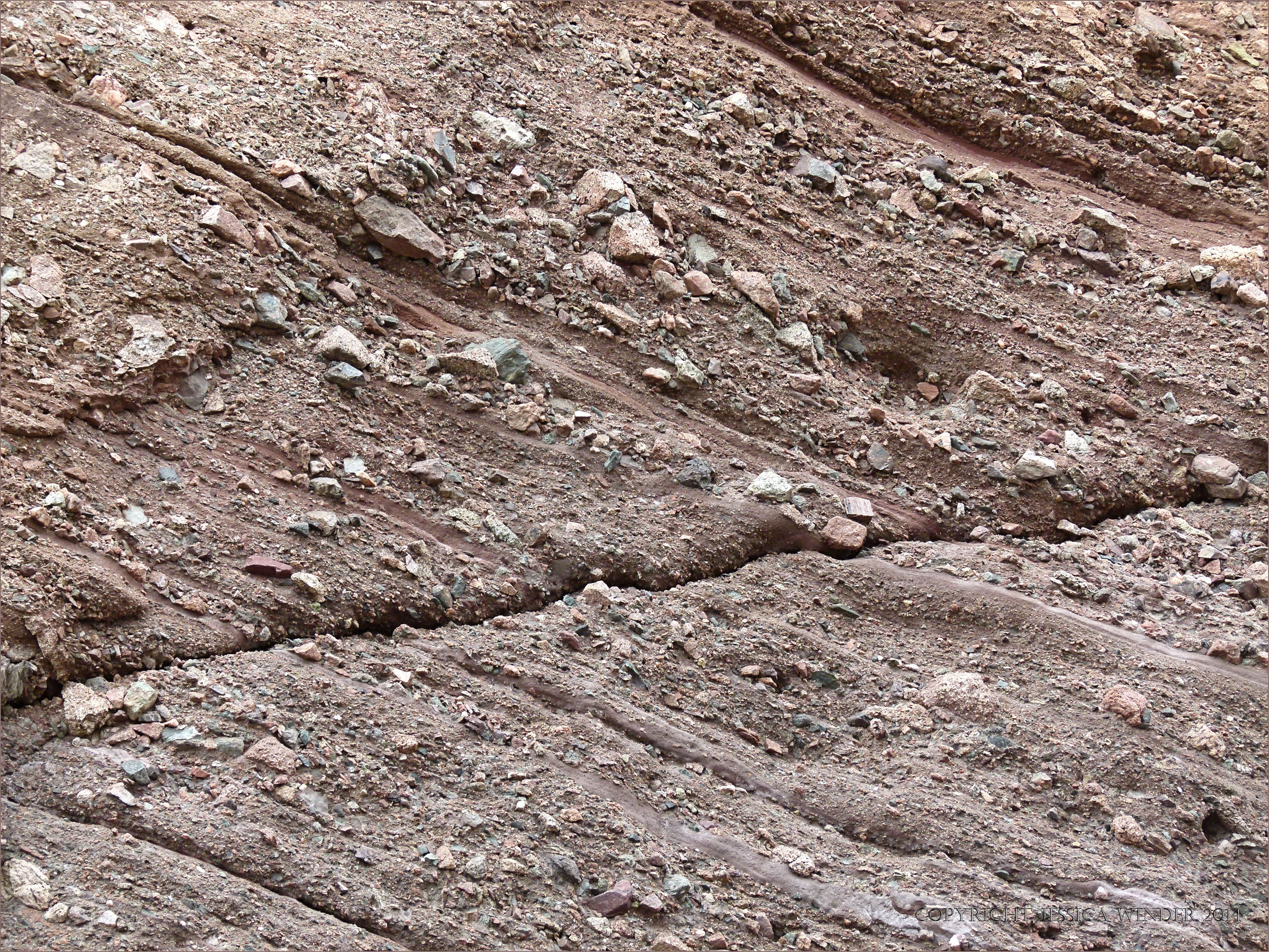 Hopewell Rocks 8 – Detail of texture and layering in redbed conglomerate of the Hopewell Cape Formation created around 350 million years ago in the Lower carboniferous Period.