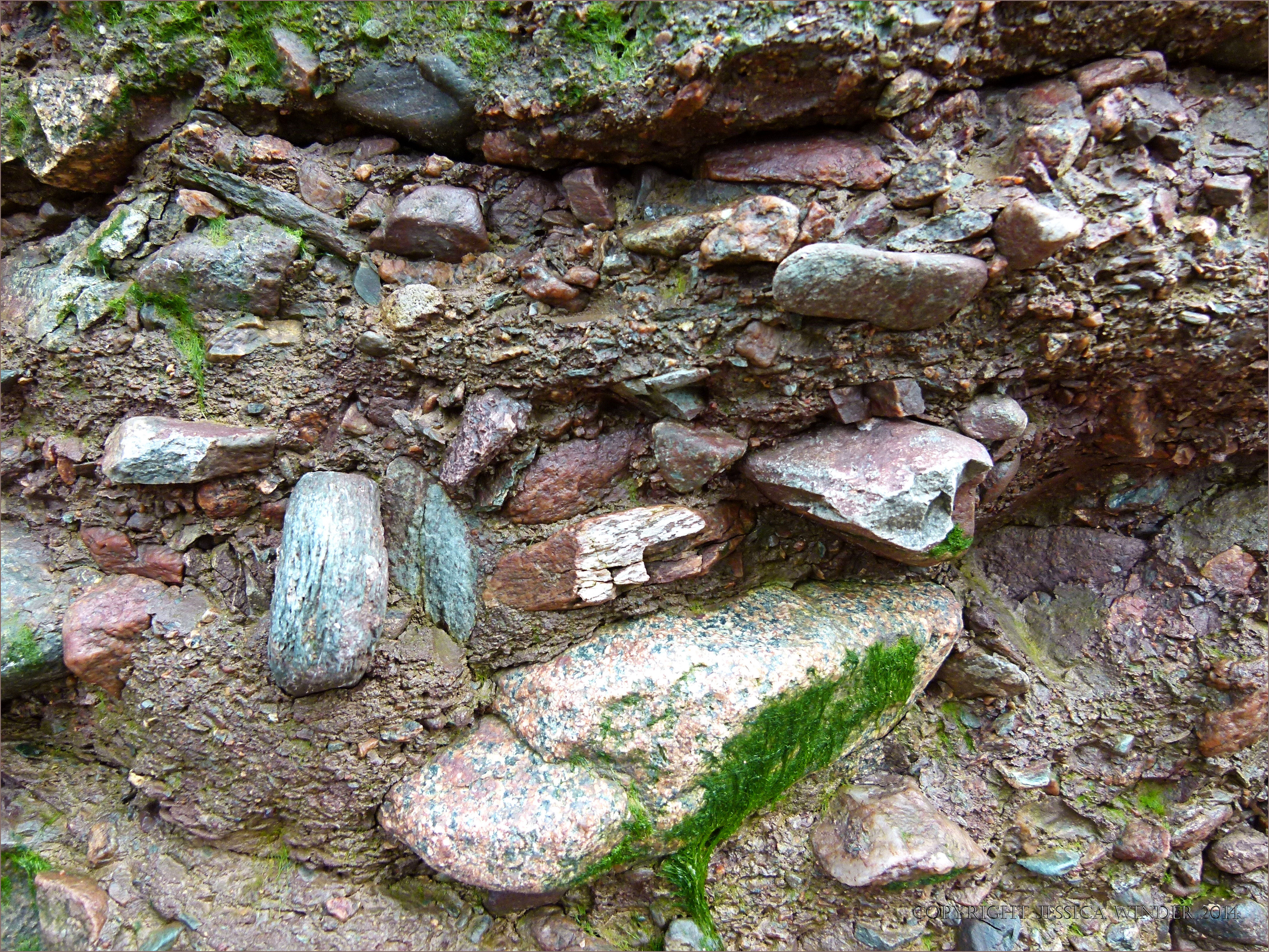Hopewell Rocks 17 – Detail of texture and composition in redbed conglomerate of the Hopewell Cape Formation created around 350 million years ago in the Lower carboniferous Period.