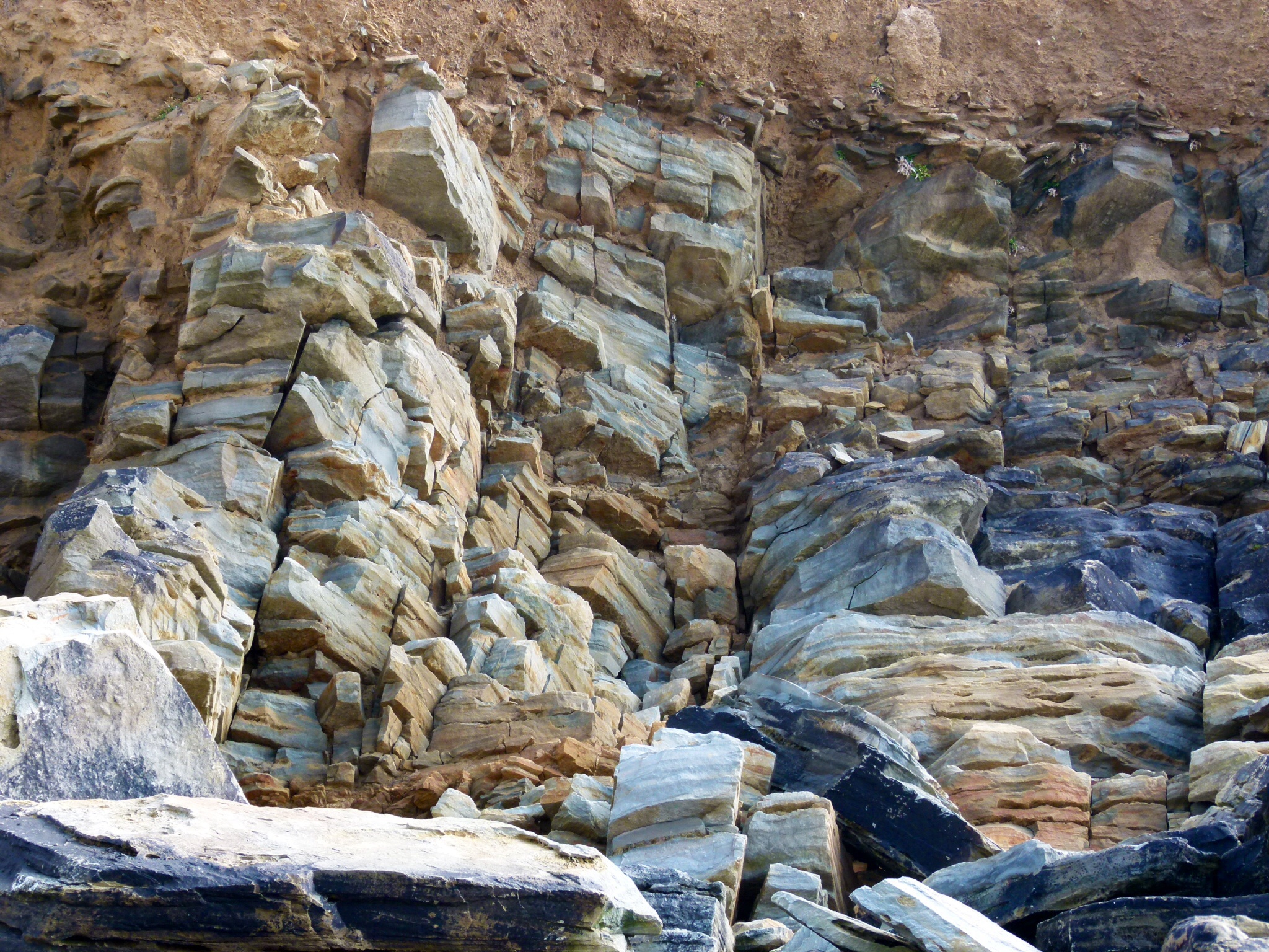 – pebbles derived from Silurian Period rocks from the Dunquin Group in cliffs at Clogher Bay on the Dingle Peninsula on the west Coast of Ireland.