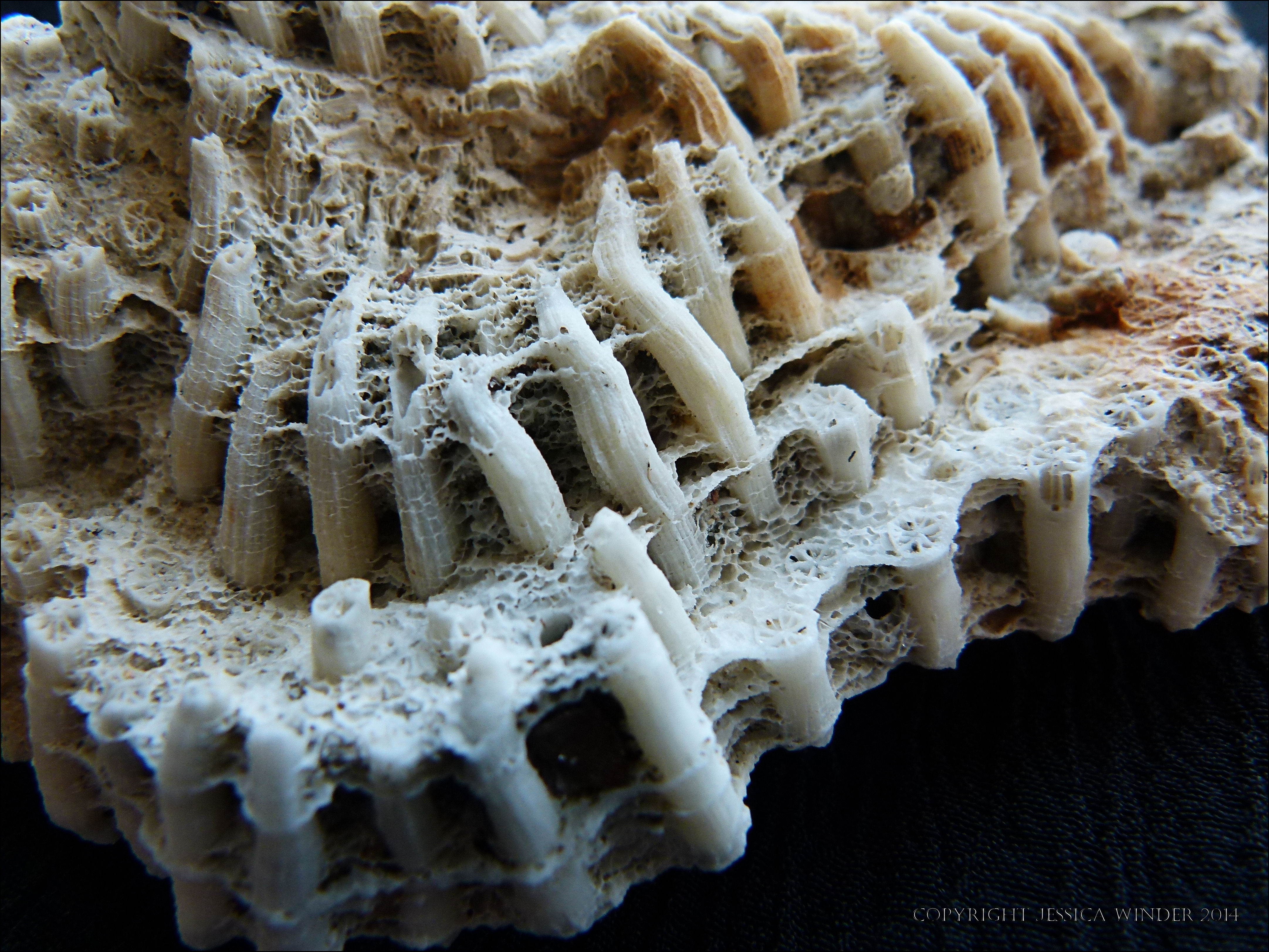 Queensland Coral 1 – Close-up of a piece of white, bleached coral from the Great barrier reef, washed ashore on the Queensland coast in Australia, displayed against a black background.
